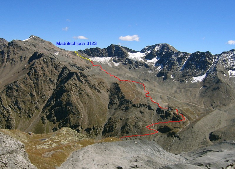 Tí jazdci majú totiž namierené do sedla Madritschjoch (3123), najvyššieho "bike sedla" Východných Álp. Podľa sprievodcov vraj stojí za to, aby sa tam človek vytrepal aj s bajkom.