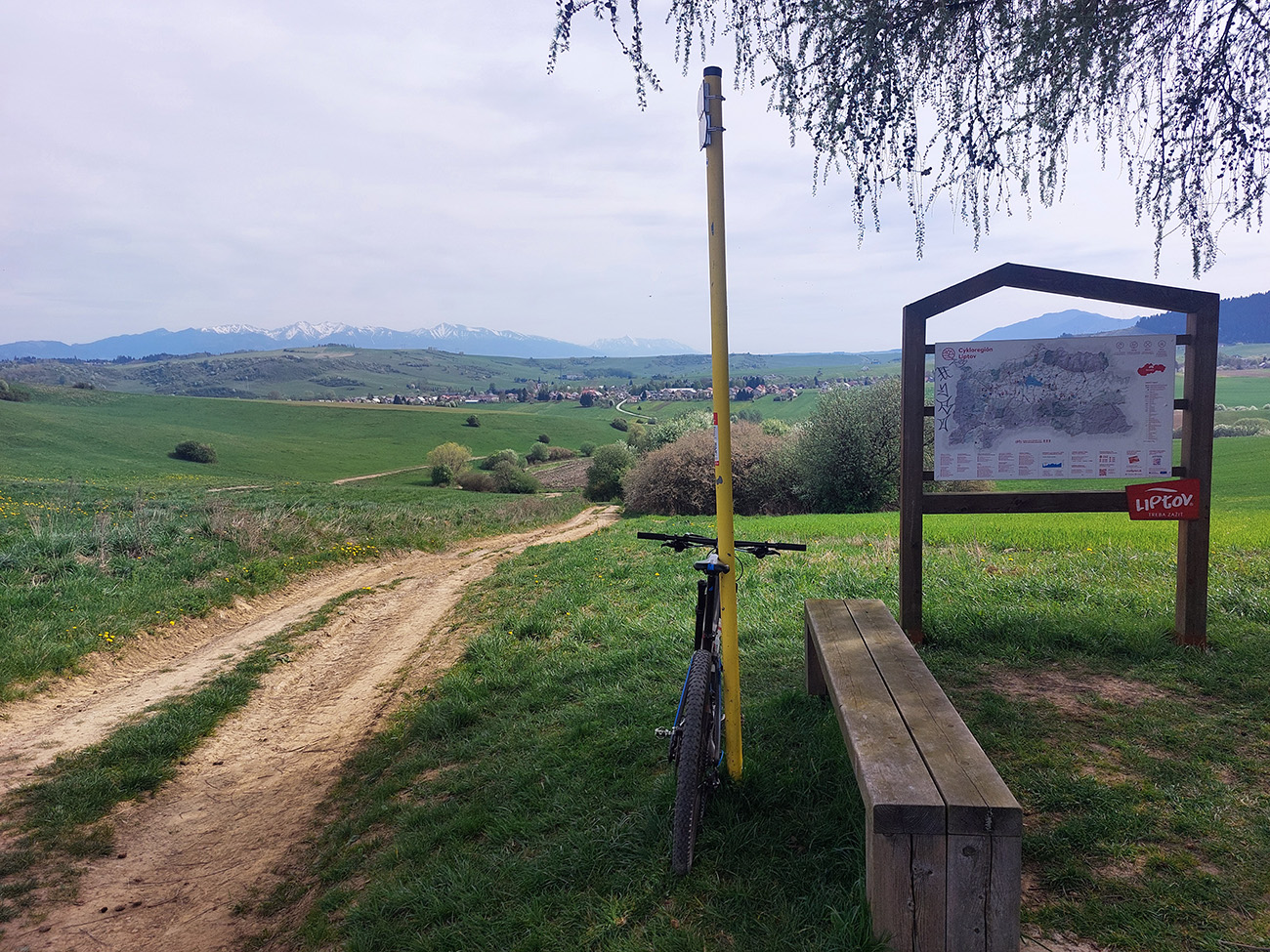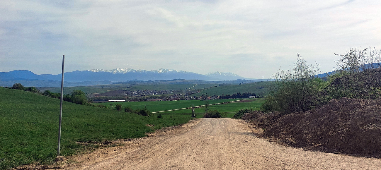S pískajúcimi kotúčmi som prebehol pomedzi domy a popod známu Belanskú skalku. Za cestou, pod cintorínom, na zaprášenej trojkrižovatke som nabehol na prostrednú z ciest. Pár minút trochu slabšej estetiky pomedzi lom (prach a bordel) a bývalý lom (smetisko) – ale ten pohľad, ktorý sa z vrcholu stúpania (vraj Biela púť) otvára! Liptov ako na dlani, dole prikrčená Ludrová a v pozadí plno bielych Tatier. Len taký trochu opar a slnko takmer oproti, tak nič moc fotka. Podvečer by to bolo iné: