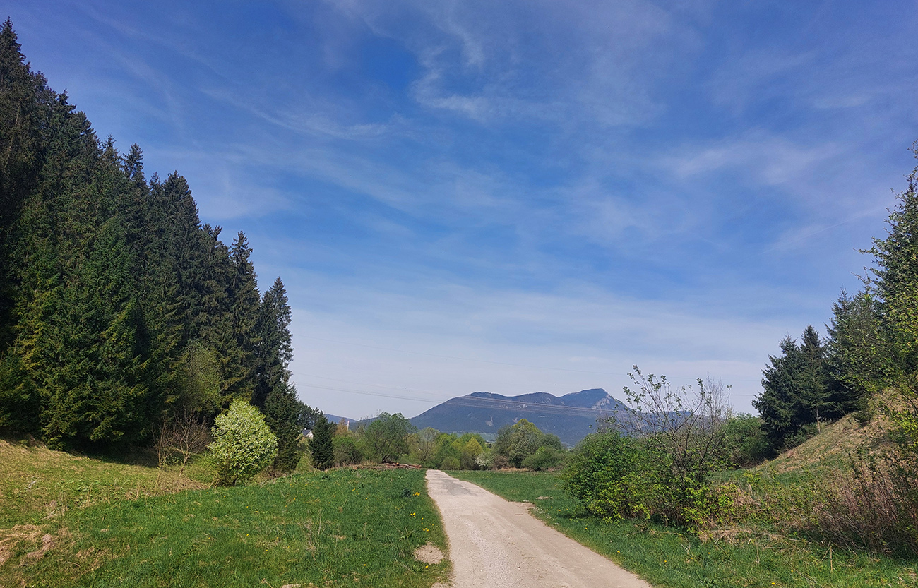 Po náročnej sobote bolo si treba nedeľu aj užiť a nohy vytriasť, samozrejme najlepšie niekde von, vo voľnej krajine. Naschvál nepíšem „v prírode“, lebo toto boli skôr také poľňačky v agrárnom podhorí. Ružomberok má väčšina ľudí asi zaradený v nie veľmi estetickej kolonke, ale už jeho najbližšie zázemie, to je niečo úplne iné. Aj keď papierenský komín sa tam pchá do panorám z každej strany. Počasíčko zato vyšlo druhú aprílovú nedeľu ako lusk, traja zmrznutí sa k nám ešte len chystali. Ráno síce bolo štipľavo svieže, no na svahoch vyššie už trochu aj pripekalo. Tak som sa pokúsil roztočiť nohy (nezadarilo sa) od železničnej stanice cez Baničné a zahriať sa v stúpaní po strmej šotoline smer Vlkolínec. Z lúk nad mestom sa rýchlo začali otvárať známe tunajšie panorámy, aj s tým komínom za chrbtom, samozrejme: