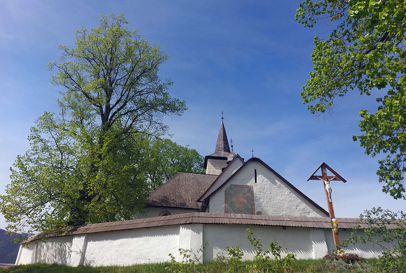 Keď už som nastúpal pod Sidorovo, tak že si zbehnem po fotku aj do Vlkolínca, ale v kostole bola akurát omša a aj pred chrámom plno ľudí. Tak som nechcel vyrušovať vrčaním voľnobežky a otočil som to pod cintorínom. Ale mám to aspoň so Sidorovom: