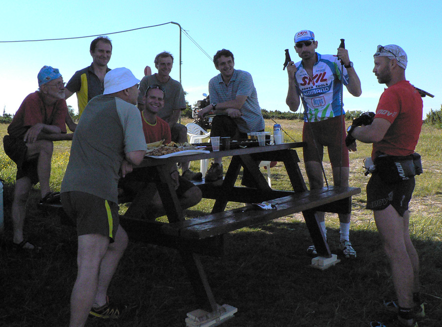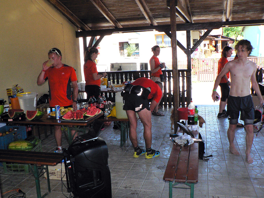 Novinky? Samozrejme už v predstihu Martin Drozd a spol. lákali na fejsbúku podrobným prehľadom príprav. Dobrá bola napríklad fotka škatúľ s ovocím pre občerstvovačky, kde nechýbalo ani vrece cibule – nepostrádateľného diaľkoplazeckého ovocia :-) Ale už ani jonťák nechýbal a v tom teple bol ozaj pre viacerých záchranou. Jonťák, masť a cibuľa sú dôkazom totálne odlišných nárokov účastníkov, ktovie čo by vzniklo ich kombináciou :-))) A akým „apgrejdom“ prešla zvuková aparatúra, noooo! :-))) A itinerár taký podrobný, až som nevedel kam sa skôr pozerať, a párky na raňajky a videoprezentácia trasy pri prezentácii a najmä tie slané škvarky v cieli :-) A aby som nezabudol na tie vymakané tričká!
