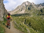 Tlačenie strmým svahom chvíľu potrvá, kým prídem na hrebeň. Podobné kombinované túry sú v Alpách úplne bežné. Podstatné je, aby sa to vyplatilo a zjazdné pasáže prevládali. Na zemi vidím stopy, začudovane pozerám. Títo jazdci neboli slabí, a myslím na bajkerov, ktorí tadiaľto pravdepodobne zjazdovali dole.