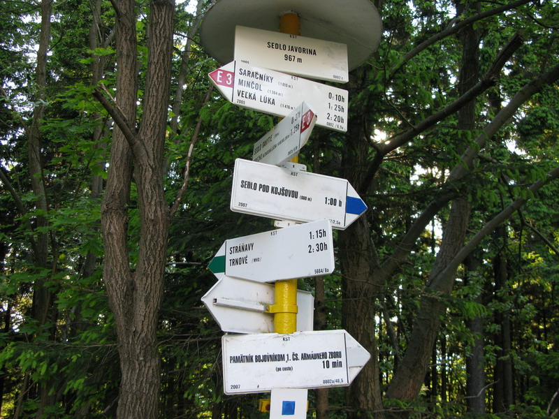 Naberám výšku po vďačnej zvážnici, na tento úkon ich mám rád. V sedle Javorina som asi za hodinku a pokračujem strmo hore vľavo smer Sarančníky. Na Minčol je to podľa značky 1h.25min. Odpájam sa z cyklotrasy na červenú značku a začínam tlačiť. Som na to pripravený a aj zvyknutý.