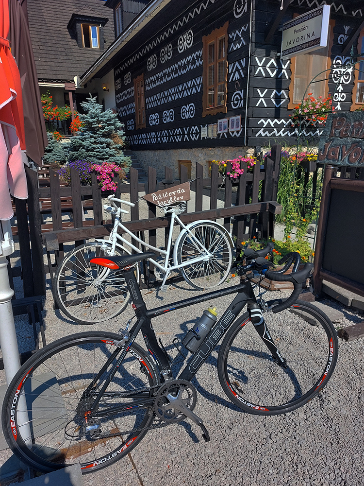 Pri tom cyklosmerovníku na fotke sranda končí, cesta sa plynule pristrmuje a aj „bonusy“ pribúdajú. Váľa sa tu aj veľa posypu zo zimy. Ale to všetko musí slušne vychovaný cesťák, obutý do 25 mm papučiek, prekonať bez frfľania. Pre gravel by to bol ideál. Keď sa pod kolesami objavia panely, to už je hore len kúsok. Za nimi kvalitný asfalt, zmiernenie sklonu v jednej serpentínke a ďalší smerovník. Ale to je len odbočka cyklotrasy do Čičmian, sedlo je ešte o nejakých 100 m vyššie, tam cestu križuje tá spomínaná červená, turistická: