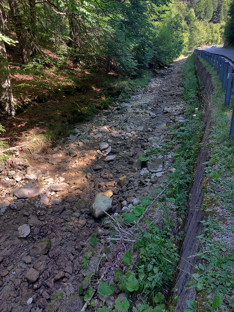 Premávka dole dolinou stále minimálna, tak si pri míňaní čerstvo namaľovaných kilometrovníkov Rajeckého maratónu dovolím aj rajdy pustiť a cestou niečo malé pojesť, nech je výživa do najvýživnejšieho kopčeka na trase. Akurát ma cestou hrôza obchádza z totálne vyschnutej Rajčanky. Takú som ju teda ešte nevidel.