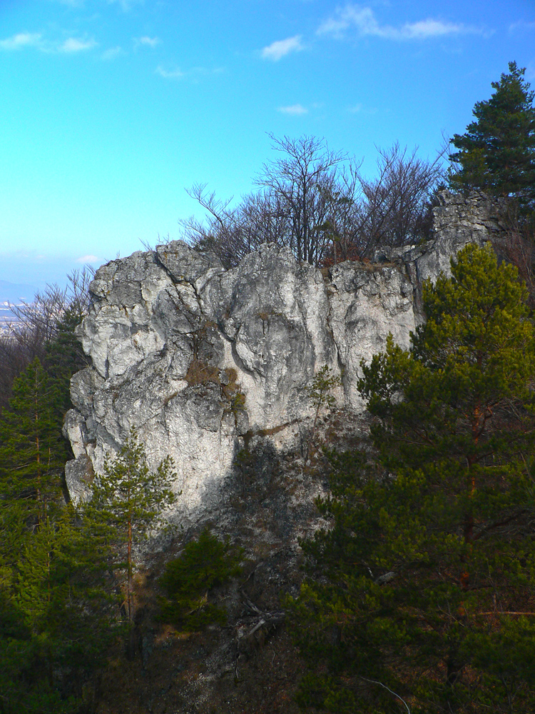 Neoplatí sa ale hneď vracať dole tou istou cestou, aj susedný kopčok Kojšová má čo ponúknuť. Od rozhľadne je to na jeho vrchol ďalšia asi polhodinka, ale už v miernejšom sklone. Len úplný záver zo Sedla pod Kojšovou je strmý ako začiatok, ale zato kratučký. Hore čakajú v riedkom borovom lese bralká a skalné veže. Najznámejší je Kojšovský skalný budzogáň, vysoký skoro ako tá rozhľadňa. Na najväčšej veži je dvojkríž. Z nej aj zo susednej je parádny výhľad na susedný kameňolom – to aby sa človek pripravil na „vizuálny šok“, ak sa rozhodne nevrátiť rovnakou trasou, ale spraviť okruh nazad do Strečna.