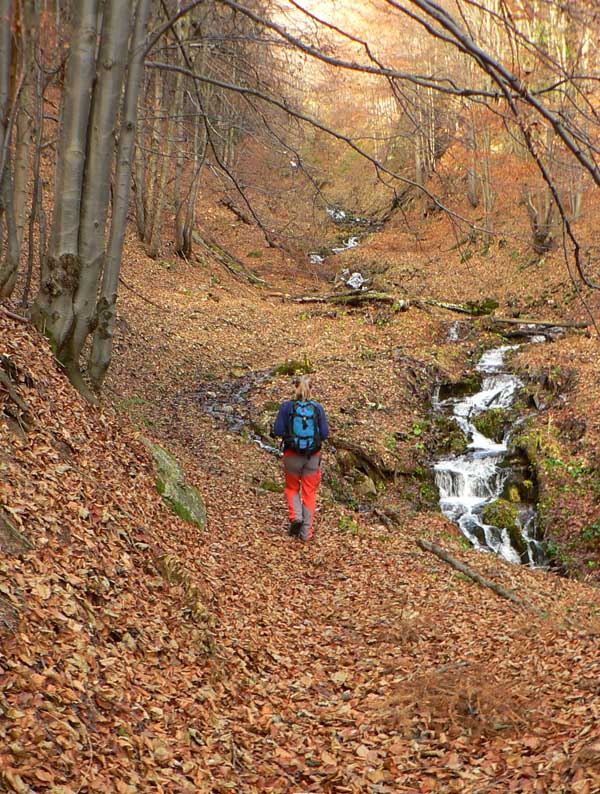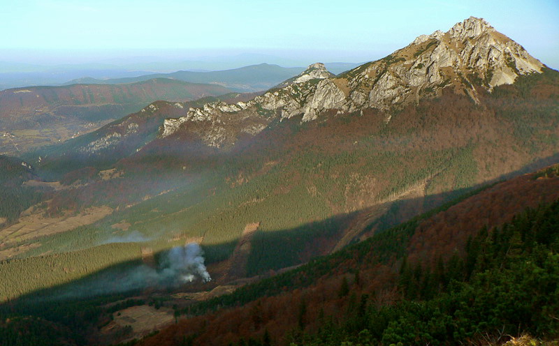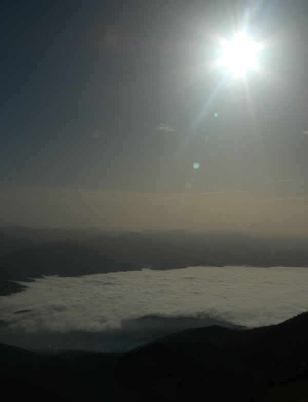 Koniec novembra 2009 bol na horách nezvyčajne teplý, zato v doline ako v práčovni. Takže to chcelo čím rýchlejšie a čím skôr na nejaký vyšší kopec. Zvolili sme východnú časť hrebeňa krivánskej Malej Fatry medzi Chlebom a Stohom, kam sa dá relatívne rýchlo „vyplaziť“ od Šútovského vodopádu. Od zastávky v Šútove – Rieke je to k vodopádu pohodlná hodinka aj niečo (podrobnejší popis je v článku o vodopáde). Odtiaľ na Mojžišove pramene riadne strmým stúpaním bučinou tiež asi hodinu a ďalších asi 30 minút na vrchol stúpania, na začiatok pohodlného traverzu popod hlavný hrebeň. Časy udávam preto, lebo oproti mape sú o dosť kratšie, pritom sme išli pomaličky, pohodovo. Slnko začalo prerážať hmlu už dolu v doline, nad lesom bol ale úplne iný svet. Rozdiel v teplote aspoň 10 stupňov a na hrebeni takmer bezvetrie. Bez problémov na tričko a kraťasy.