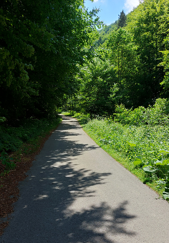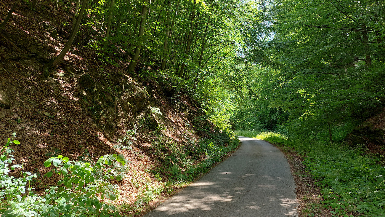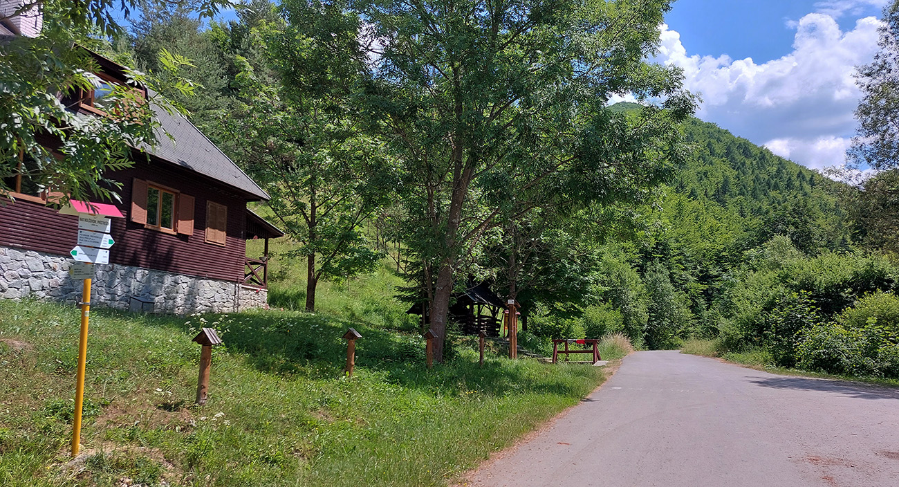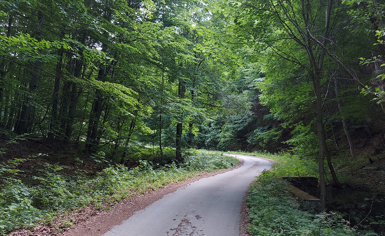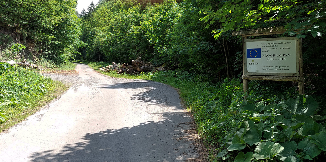Od chaty potom už začína dolina. Keď je širšia, sklon je mierny, keď sa zúži, pritvrdí. Z lesa vtedy vykukujú aj skalné vežičky, vedľa zurčí potok a čím vyššie, tým je nad hlavou viac tieňa. Po takých piatich kilákoch cesta preskakuje potok a po ďalších pár stovkách metrov je tu záver cyklotrasy, ale najmä asfaltu. Dá sa samozrejme pokračovať po ceste pohodlne až do sedla Príslop, ale to už chce aspoň gravel.