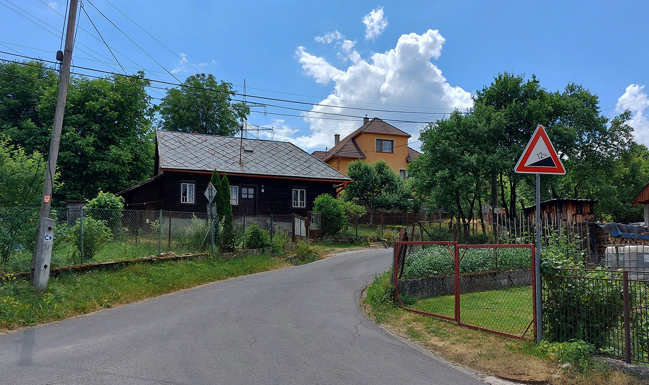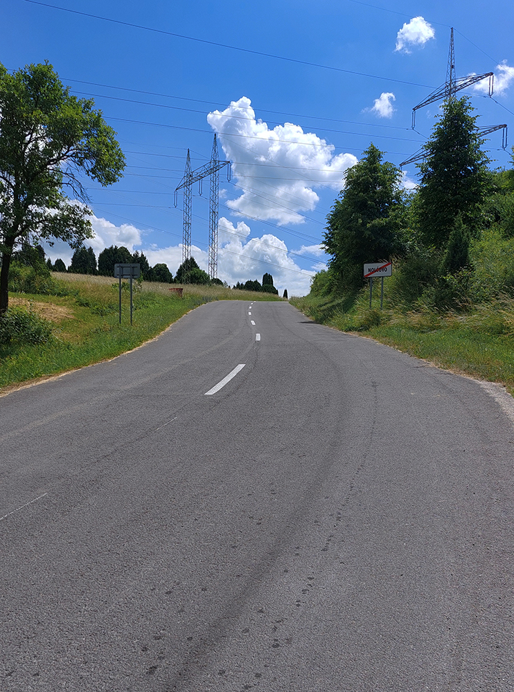 Cestou dole žiadne zákernosti, asfalt stále „drží formu“. Len miestami ak z bočných svahov ťahali drevo, trochu bordelu. Kto by nemal dosť a potreboval by potrénovať vyššiu intenzitu, pre toho je tu „nolčovská cintorínska stojka“ – kratučké, ale asi najprudšie miesto na ceste SNP (preto som tie dobré brzdy spomínal), ktoré začína odbočkou priamo dole v dedine. Až sa divím, že tam ešte nie je segment. Ale oplatí sa hore vylámať – odmenou je pohľad na panorámu hrebeňa Krivánskej Malej Fatry.