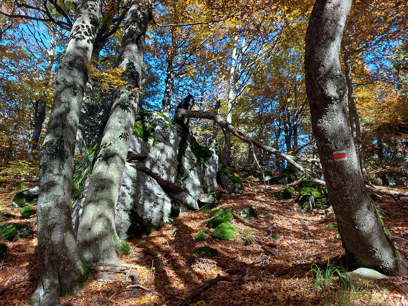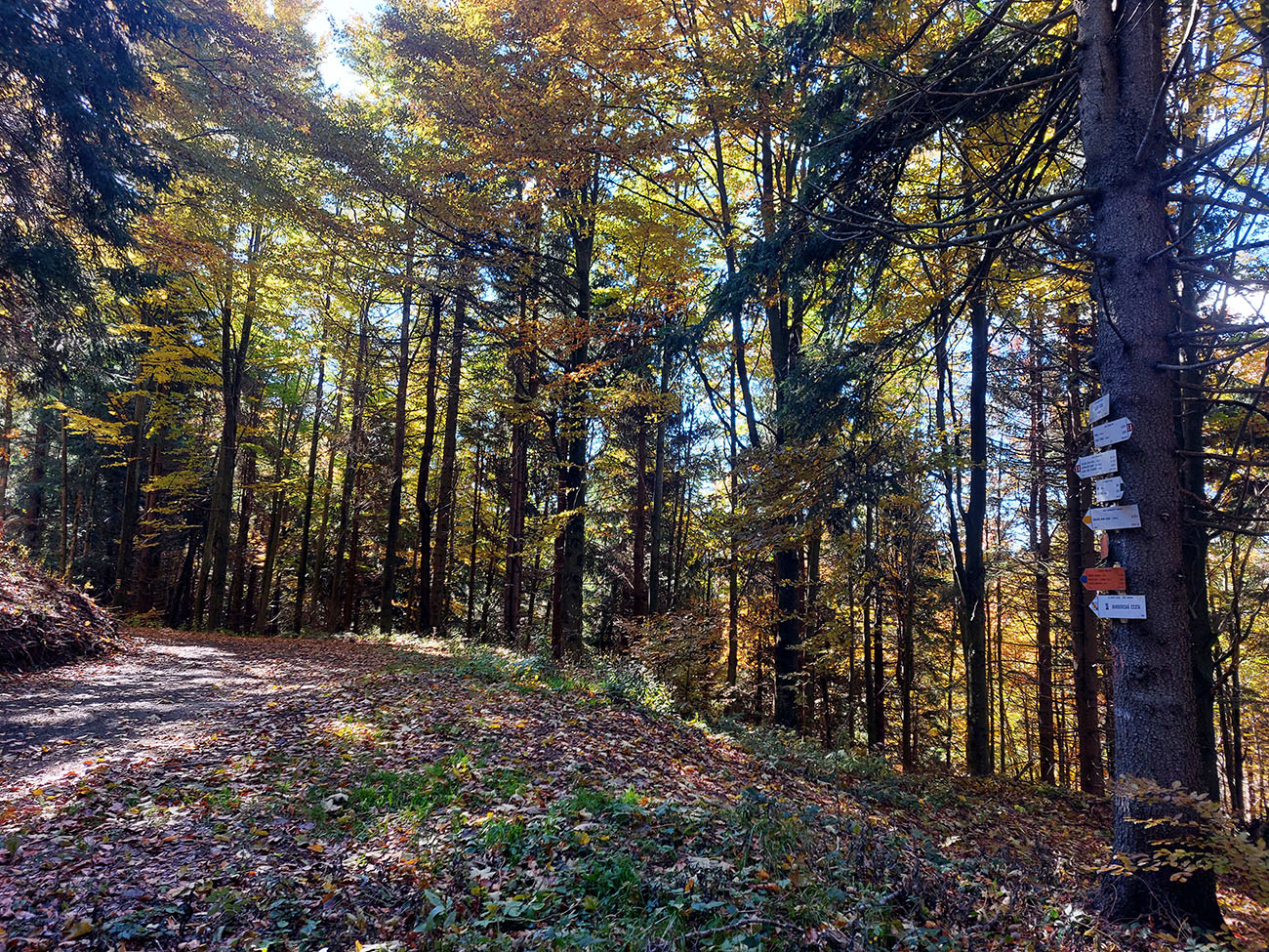 Potom smerom hore na hrebeň krátky a strmý choďák, dobrý na zmenu stereotypu. Zopár kratších chodeckých miest je samozrejme aj na hrebeni, až po Flochovú, pomedzi ne plno pekných lokalít, ako bralká pri chodníku, vyhliadky na Bystricu, samotný tunel a tak... A konečne slnko do chrbta, lebo také októbrovo nízke v tej prvej časti trochu otravovalo :-)