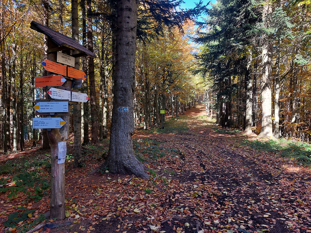Prvá etapa od vlaku cez dedinu a popod lom do doliny Čiernej vody, ponad vodárenskú nádrž, popri chate Obrázok a Dirhabské sedlo až po zelenú značku pod sedlom Tunel bola ozaj výlučne po zvážniciach. Boli aj „strade bianche“, aj nejaký ten asfalt, aj mäkké, machom a ihličím vystlané cesty, všeeetko možné, ale všetky dobré, nerozrýpané, aj pre bajk. A farby dookola sýte, radosť behať/jazdiť.