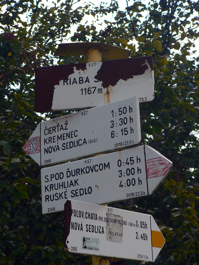 Ruské sedlo, voľakedy cestný hraničný prechod, podľa starých fotiek sa tu dokonca dalo dotankovať palivo do auta :-) Tabúľ, smerovníkov a značiek je tu neúrekom, ale my ideme obzrieť, kde to chceme spať. Kúsok od hranice, na našej strane, rovnaká útulňa ako pod Čierťažou. A rovnako obsadená hulákajúcou partiou pripitých Poliakov. Tak vďaka... Na stan tu ani nie je nikde dosť miesta, tak len sa opláchneme v prameni a dotankujeme v ňom „palivo“ aj my, a ideme hľadať nocľah nižšie.