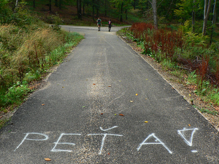 Táto stovka je vďaka dobrovoľným „značkárom“ doznačená skoro do absolútna (zadný voj mal isto čo robiť, kým všetko pozbieral), napriek tomu pri kaplnke za Veľkým Gričom viacerí mali asi problémy, keď neodbočili za ňou doľava, ale valili rovno dole po ceste – značku tam nevidno a fáboriek nikde. Zrejme ich nejaký dobrák odriapal, mysliac si, že niekto narobil bordel a nechal tak, ktovie? Inak celé značenie super, ešte aj šípky na ceste, no a nočné odrazky, úplná bomba. A nehýbala sa žiadna, tak to boli fakt len odrazky :-) Cestou niektorí síce občas nadávali, že nevidno heslá na kontrolách, že sú malé – ale jasné boli pokyny, že sú na smerovníkoch a smerovník prehliadnuť sa hádam ani nedá. Malé boli asi aj preto, aby vydržali pred nenechavcami – lepšie ako veľká ceduľa, ktorá zmizne. A stovka nie je atletický ovál, istá nutnosť orientácie v teréne je tu vždy.