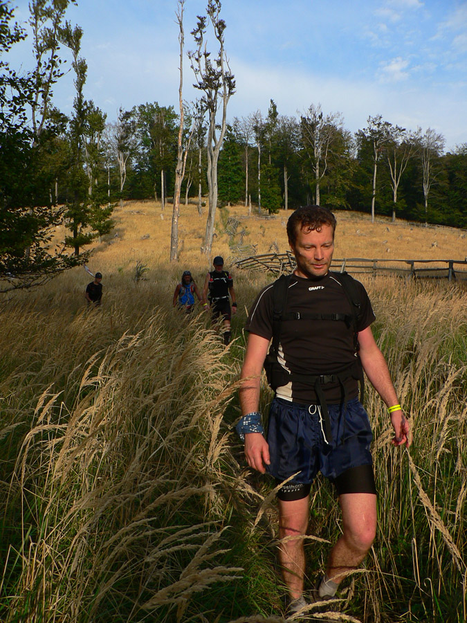 A bonbónik najsamlepší: namiesto rovinatého podhoria Tríbeča s množstvom asfaltu sme si vychutnali jeho hrbatý hrebeň. Aj hrad Jelenec ku koncu sa obchádzal nie tradične zo severu, ale z juhu, po žltej. Tam bola dokonca aj tajná kontrola, div sa svet:-) Asi kilák nad tou živou. Aspoň nám neprišlo zaťažko sa na ňu vrátiť po pečiatku, keďže sme ju na prvý raz vďaka predcieľovému zatemneniu mozgu ignorovali (že „Aha, ako to bliká! A to načo upozorňujú na kontrolu, veď sme o chvíľu tam!“). Neboli sme sami, ale nie všetci sa tam vrátili – podľa 3-hodinovému „prídavku“ k ich cieľovým časom vo výsledkoch.