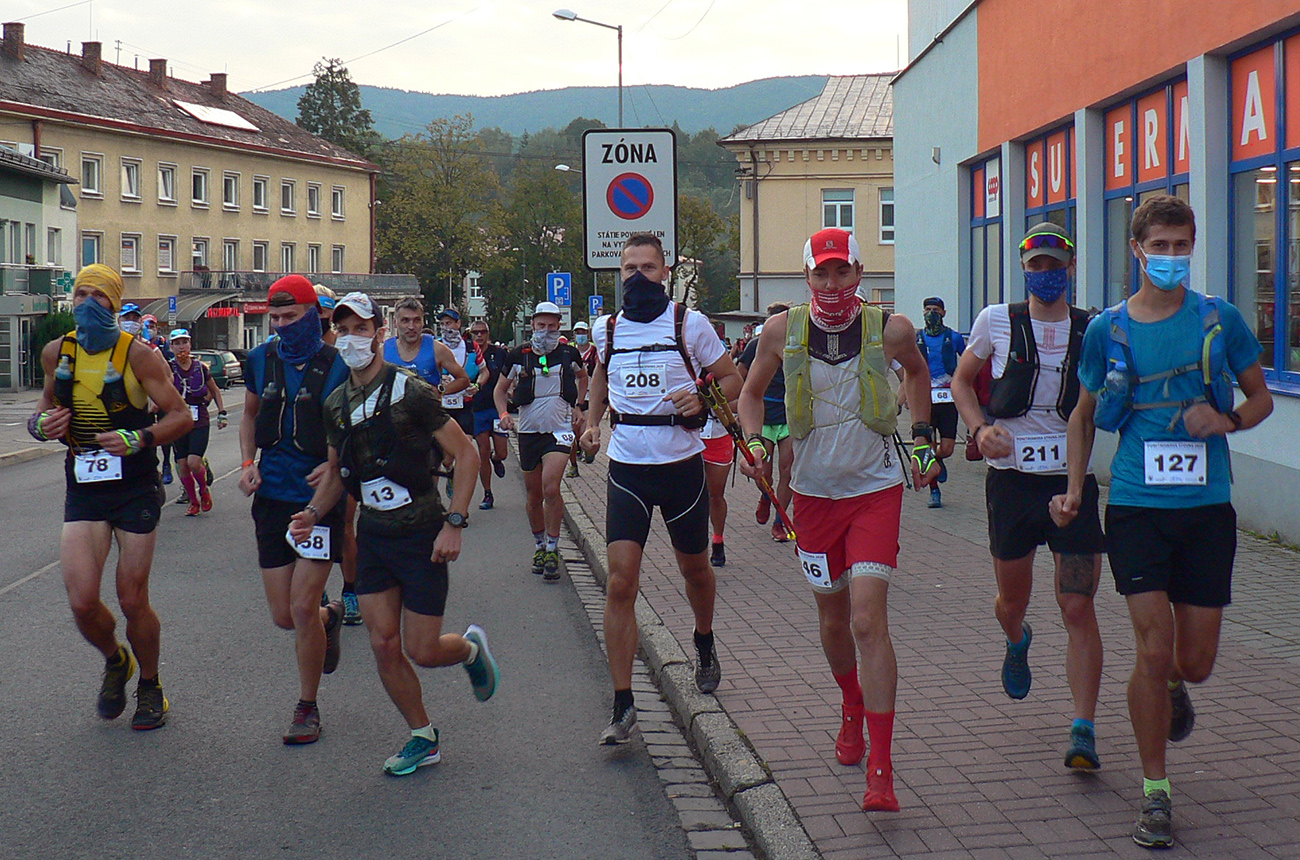 Štart klasicky o siedmej, vyrútilo sa spod brány asi 200 kusov. Na radosť starého foťáku ale dosť pomaly, stihol zaostrovať . Aj mimozemšťania na čele vyrazili nejako nesmelo. Dôvod? Povinnosť mať rúška až po posledné domy Handlovej. No, poriadne sa mi hore kopcom zatmievalo pred očami.