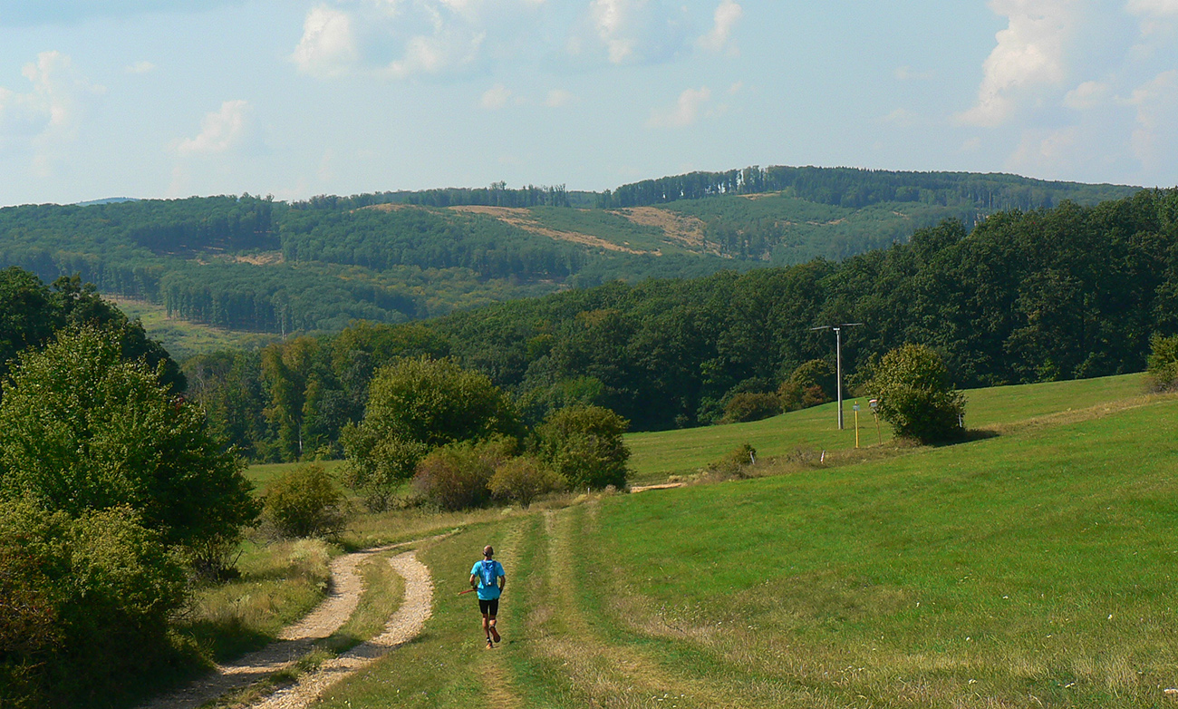 Ale cez Tríbeč som mal aspoň zase tieň – aj keď tam sú tie lesy nejaké redšie. Aj tradičné drevené ploty chrániace viac savanu (či čo to tam je) ako mladý les, aj pováľané ploty, kde som našťastie žiadny trčiaci klinec nechytil. Ale stíhal som vnímať čo mám pod nohami, lebo to už bolo skôr plazenie ako beh. No a tá strmina s preliezačkami pod Javorovým vrchom, no rozkoššššš!