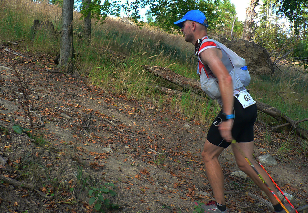 No a mne sa to pekne zlomilo – ani nie tak do dákej krízy, ale začali ma bolieť dýchacie svaly a popichávať v boku. Aj trávenie akosi prestávalo fungovať, energia zo slaniny, ktorá bola na raňajky, asi došla. Čiže tempo na hrane. Do Skýcova som sa ešte nejako dopotácal a odtiaľ už len kombinácia gél + cola, lebo aj zásoby toaleťáku sa mi začali míňať, hehehe.