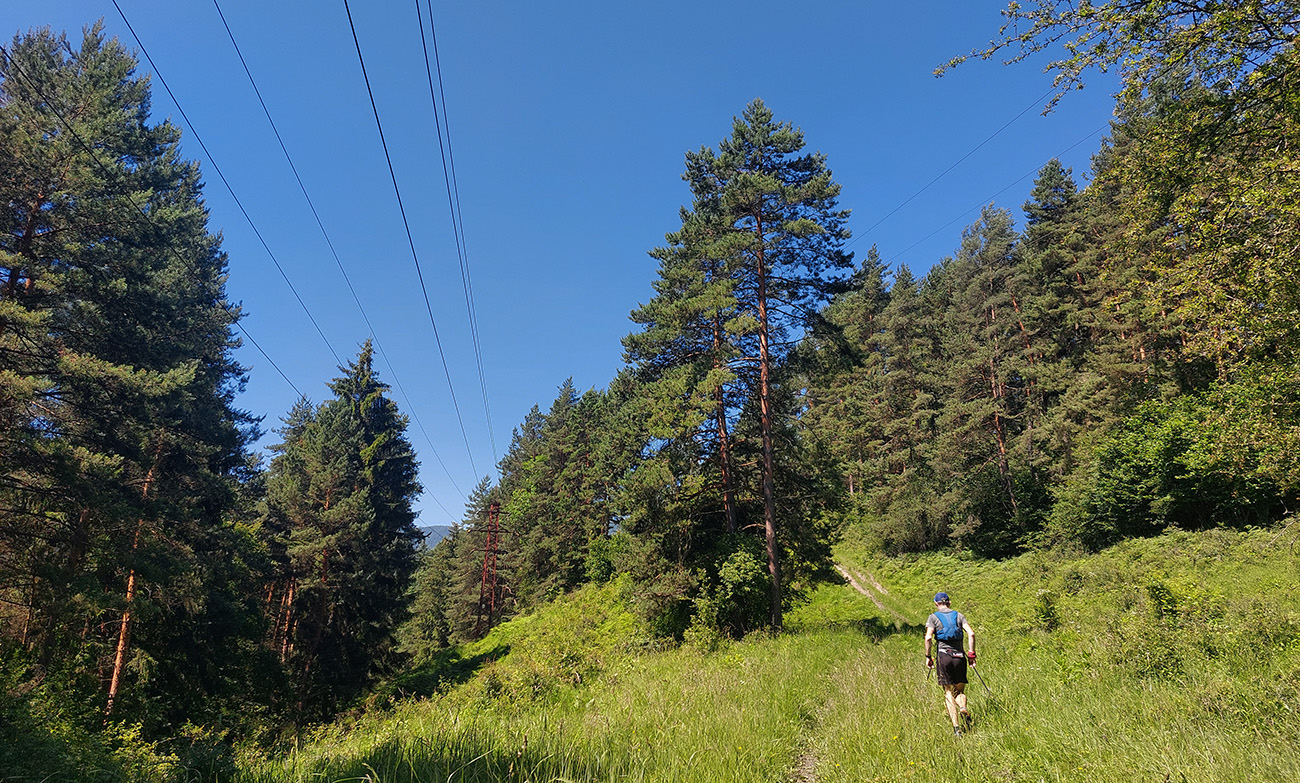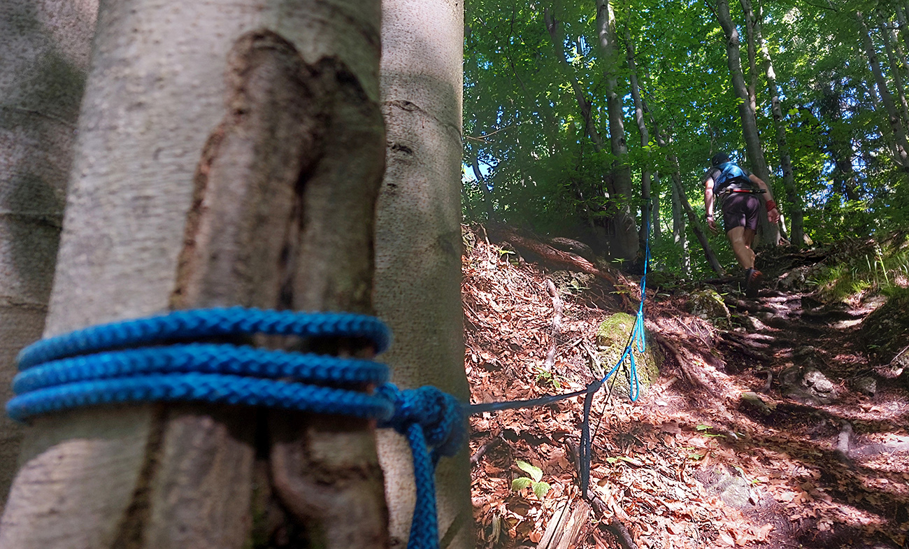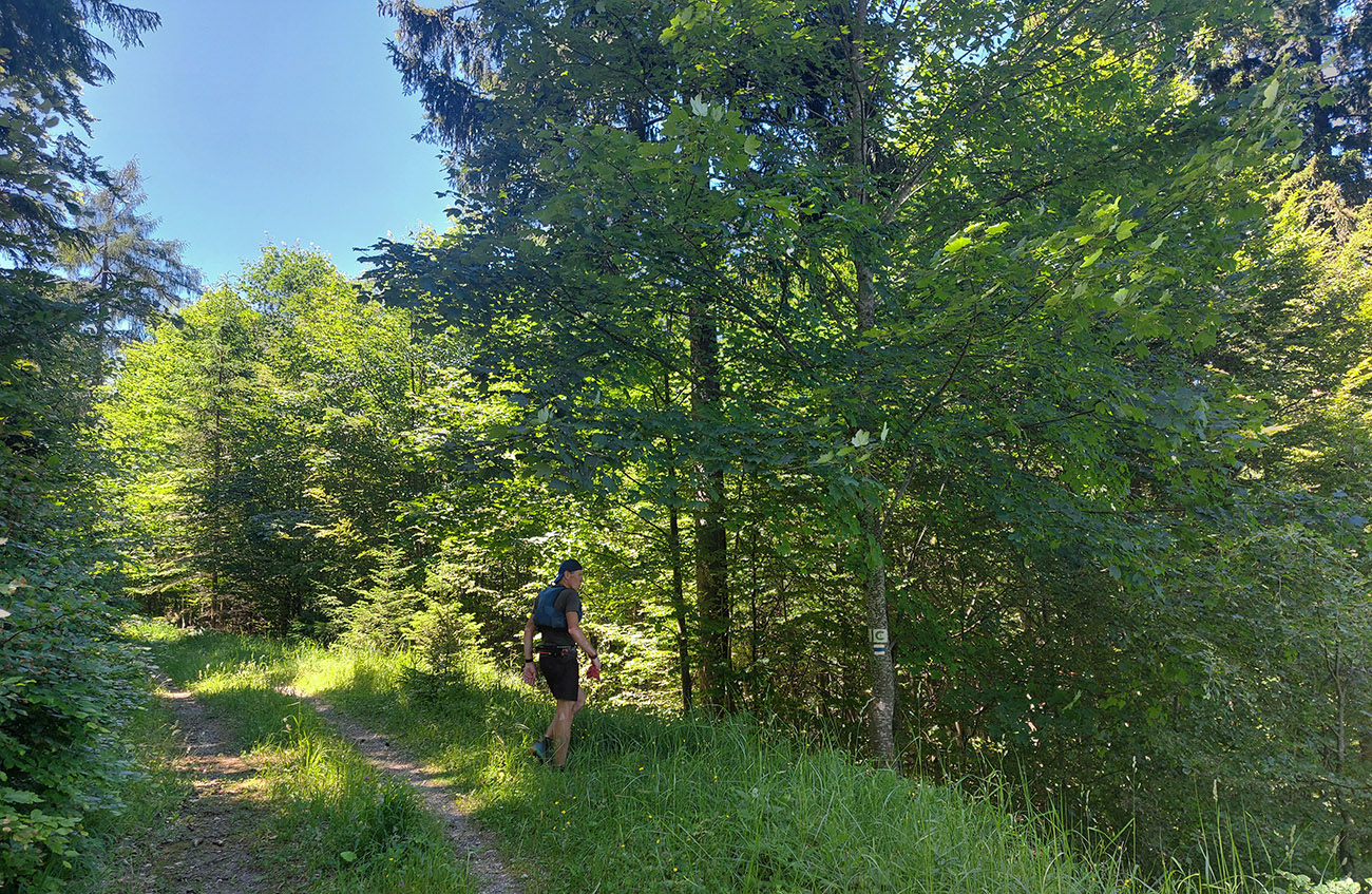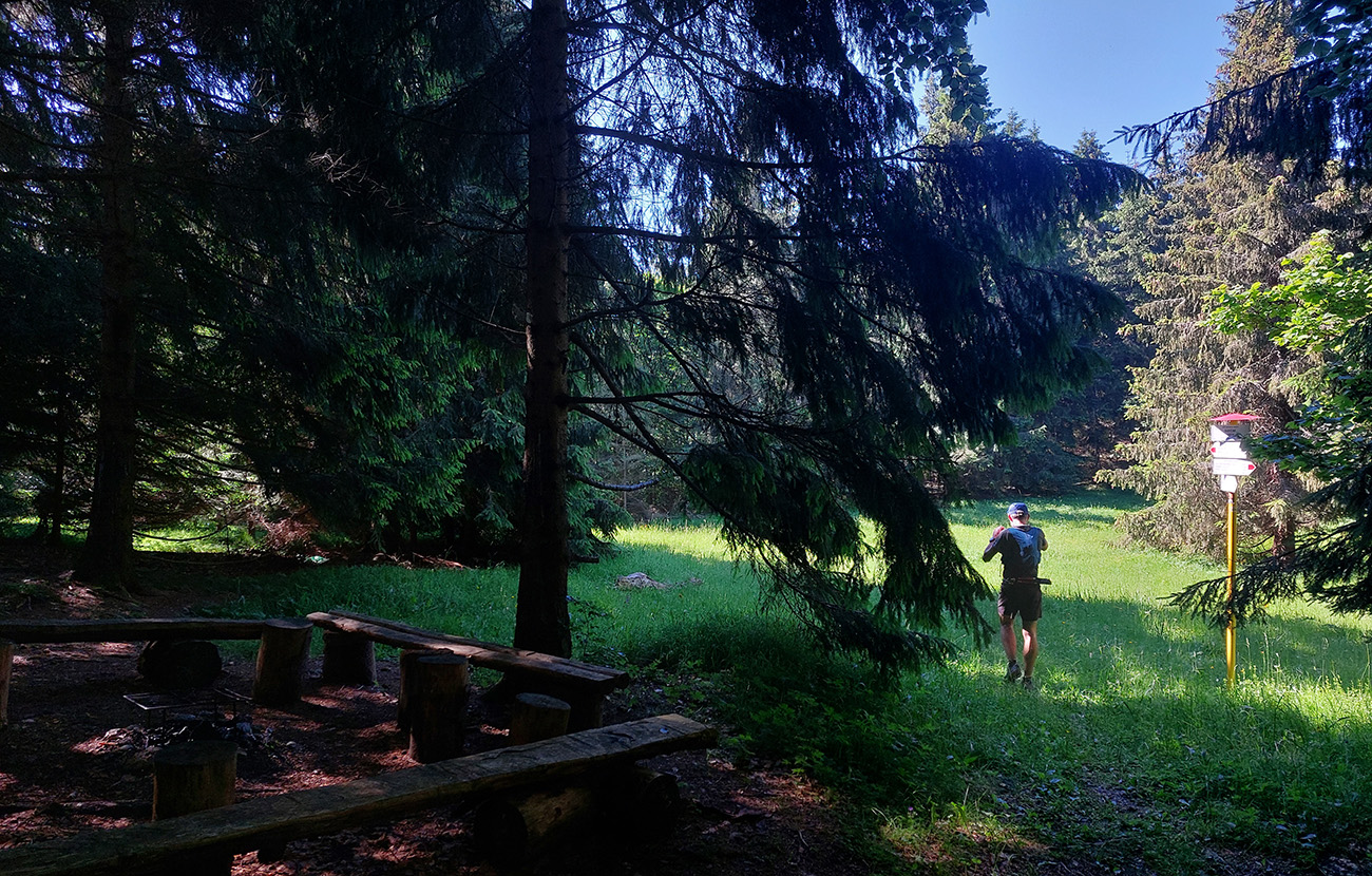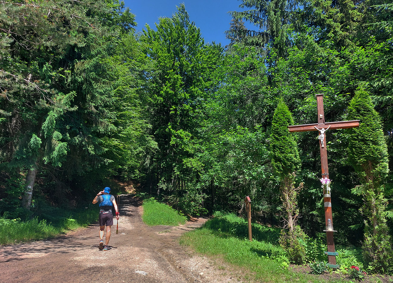 Potom už ale až príliš dlhý a monotónny úsek po šotolinách, po cyklotrase smerom do Ľubochnianskej doliny, až kým sme ju neopustili v Sedle pod Červeným grúňom. Aspoň že tieň, lebo na slnku už dobre pripekalo. Pár studničiek a prameňov padlo vhod. Zhodli sme sa, že obaja nemáme radi takéto dlhé, nemastné – neslané stúpania, ani na beh, ani na chôdzu. Krízu som zahnal gélom a medvede, pred ktorými nás varovali protiidúci cykloturisti, asi fučaním a dupaním.