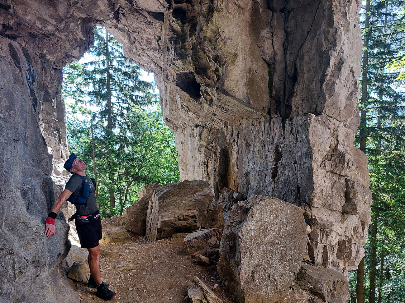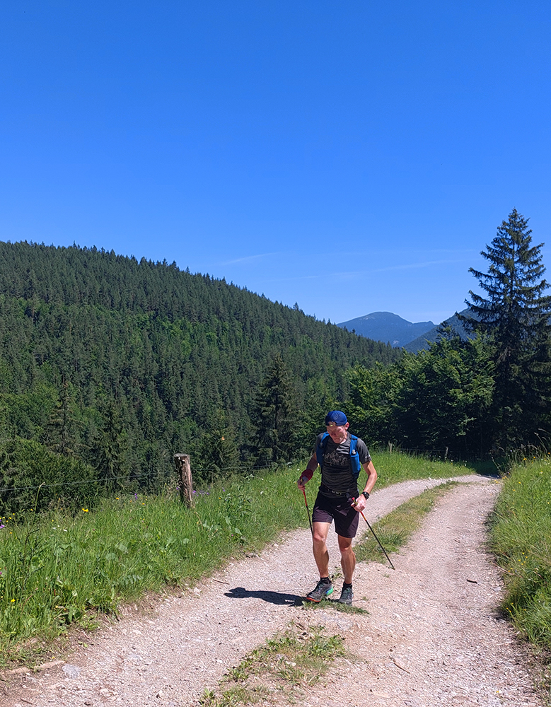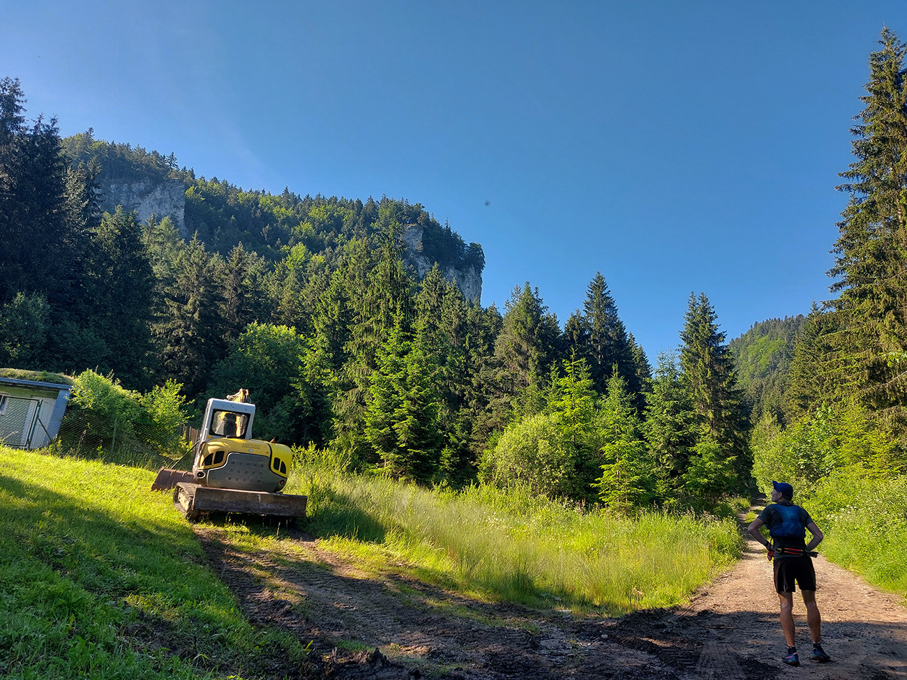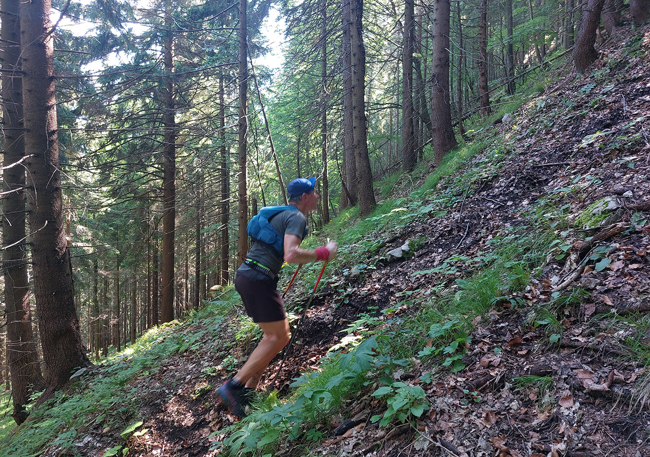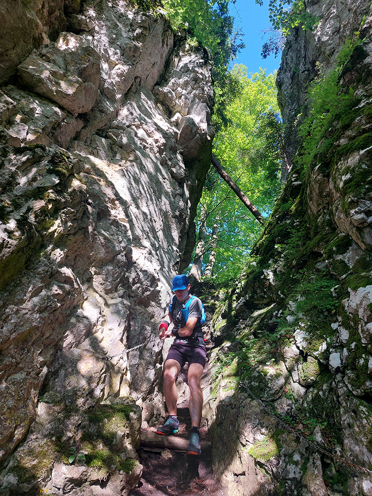 Potom už ale až príliš dlhý a monotónny úsek po šotolinách, po cyklotrase smerom do Ľubochnianskej doliny, až kým sme ju neopustili v Sedle pod Červeným grúňom. Aspoň že tieň, lebo na slnku už dobre pripekalo. Pár studničiek a prameňov padlo vhod. Zhodli sme sa, že obaja nemáme radi takéto dlhé, nemastné – neslané stúpania, ani na beh, ani na chôdzu. Krízu som zahnal gélom a medvede, pred ktorými nás varovali protiidúci cykloturisti, asi fučaním a dupaním.