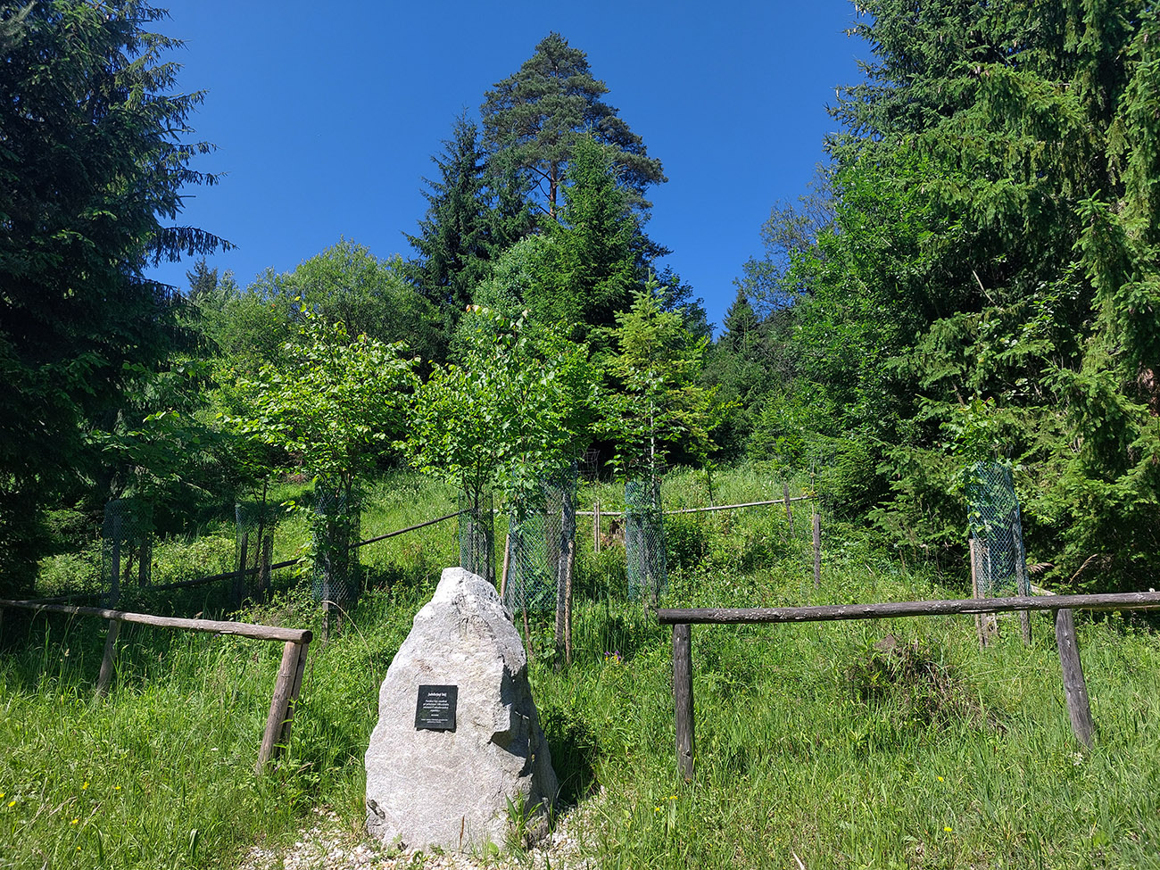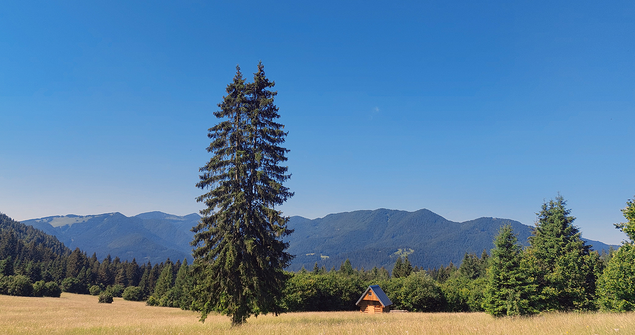 Len kúsok po ceste akoby nazad do Komjatnej a daváj doľava, do doliny potoka Bukovec, stúpať bez značky na hrebeň medzi Kečkami a Radičinou. Dole pri vodojeme pekné zátišie s bralami Sivej skaly a bagrom, potom už nás cesta neomylne viedla na hrebeňovú žltú. Len čím vyššie a čím strmšia, tým viac rozmixovaná lesnou technikou. Hore na lúke sme už neviem koľký raz dobre oprali boty a išlo sa ďalej, smer východ.