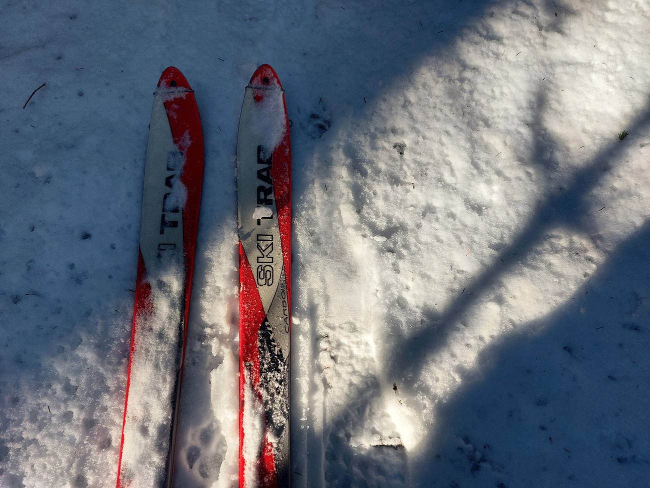 Noooo hej, napadlo – od päť do dvadsať čísiel, na žiadny základ. Alebo teda na ľadový, vo vyšších polohách. V nižších polohách možno aj posledný raz tejto zimy. Na strmých svahoch nová perina neprilepená a hrozba lavín, v nižších polohách nula snehu, tak ako sa dostať tam, kde by sa dalo aspoň poprechádzať? Nájdu sa isto aj miesta, kde sa dá dobre polyžovať, ale treba vychádzať z reálnych možností. Takže požiadavka znela: nenosiť a neprenášať dlho a najlepšie ani často pásy neodliepať. Preto vlakom do Rybárpoľa a po 20 minútach pešovania lyže na sneh - na umelý, zjazdovkový, široko – ďaleko jediný, ako inak. O siedmej ráno, nech potom nezavadziam. A samozrejme som nebol jediný ani prvý. Niektorí ranostaji už tam po výšľape balili kšeft. Vzal som kameňáky a aj pásy som nahodil tie najstaršie, lebo som tušil, že na ľadovom menčestri budú stačiť a vyššie v lesoch im poukrývané zákernosti nebudú až tak vadiť. Dole sviežich vari mínus päť, cez deň vraj o 10 viac, hore malo byť cez deň mierne pod nulou.