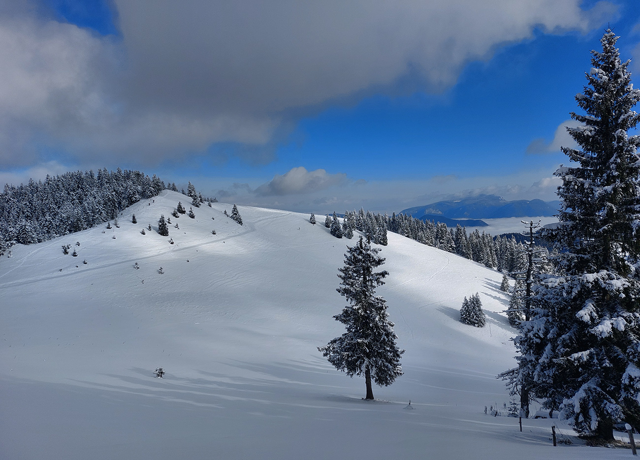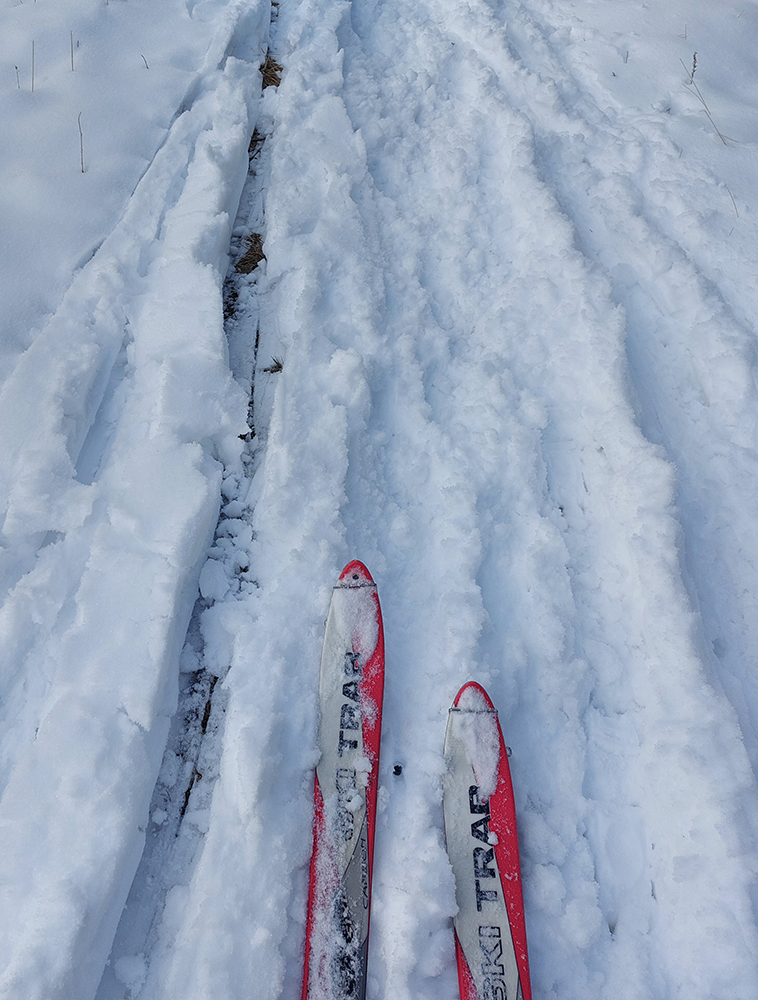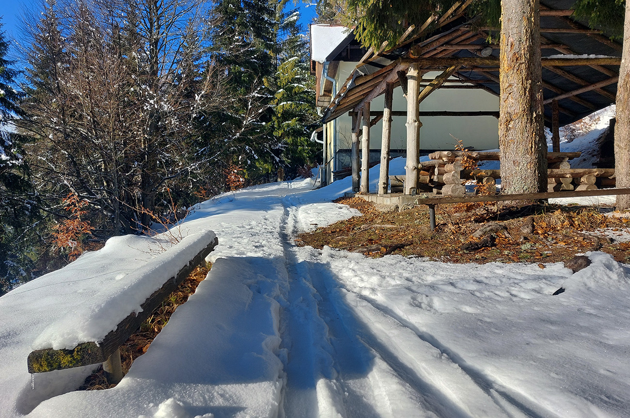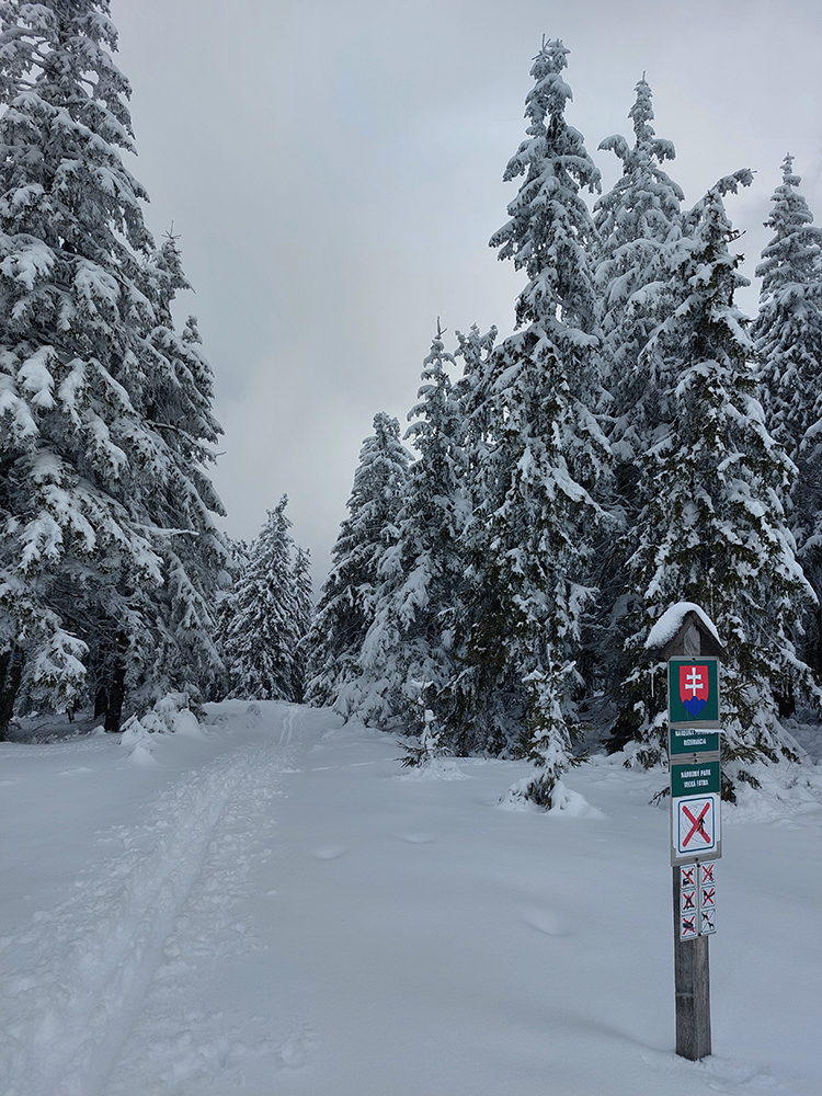 Na lúkach na cyklotrase medzi Vtáčnikom a Šiprúnskymi sedlami to vyzeralo rozprávkovo, ale hroty palíc klopali o zem a kôpky prisnežených trávových trsov žalovali o nízkej hladine snehu. Niekde naviatych aj 20 cm, no na viacerých miestach pod hustejšími korunami ledva cenťáčik a smejúce sa pirane.