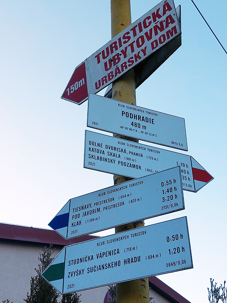 Dno podhradskej doliny je tradične rozjazdené traktormi, tak sme to švihli hore na hrad, a to už bola príjemná prechádzka na záver. Väčšinou lesné chodníky a šuchot lístia pod nohami. Aj vynorenie do panorámy nad dedinou cestou dole z hradu, s protiľahlou Krivánskou Fatrou, krásne nasvietenou: