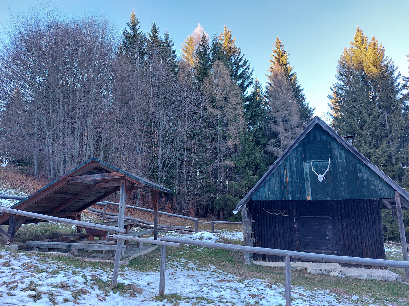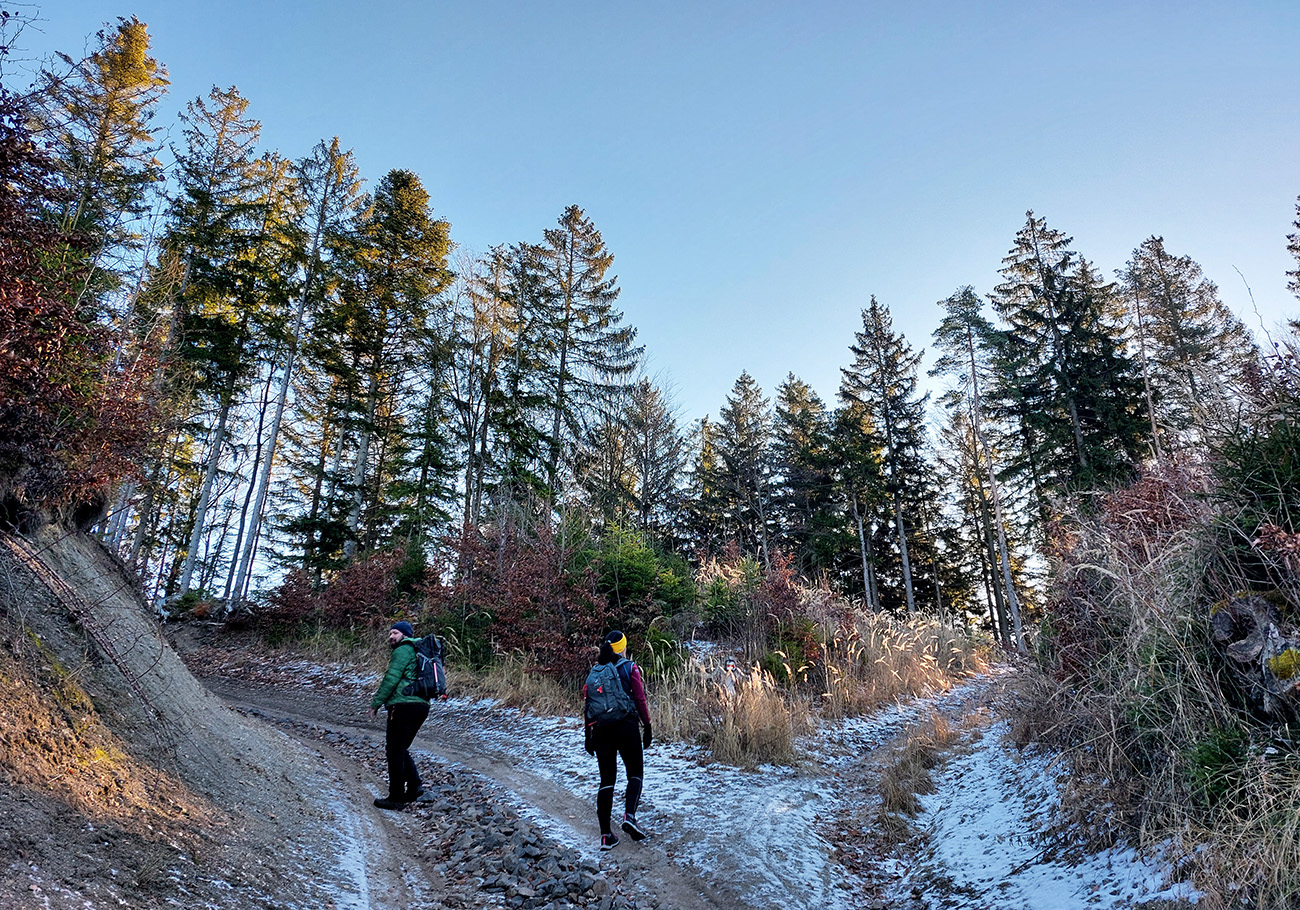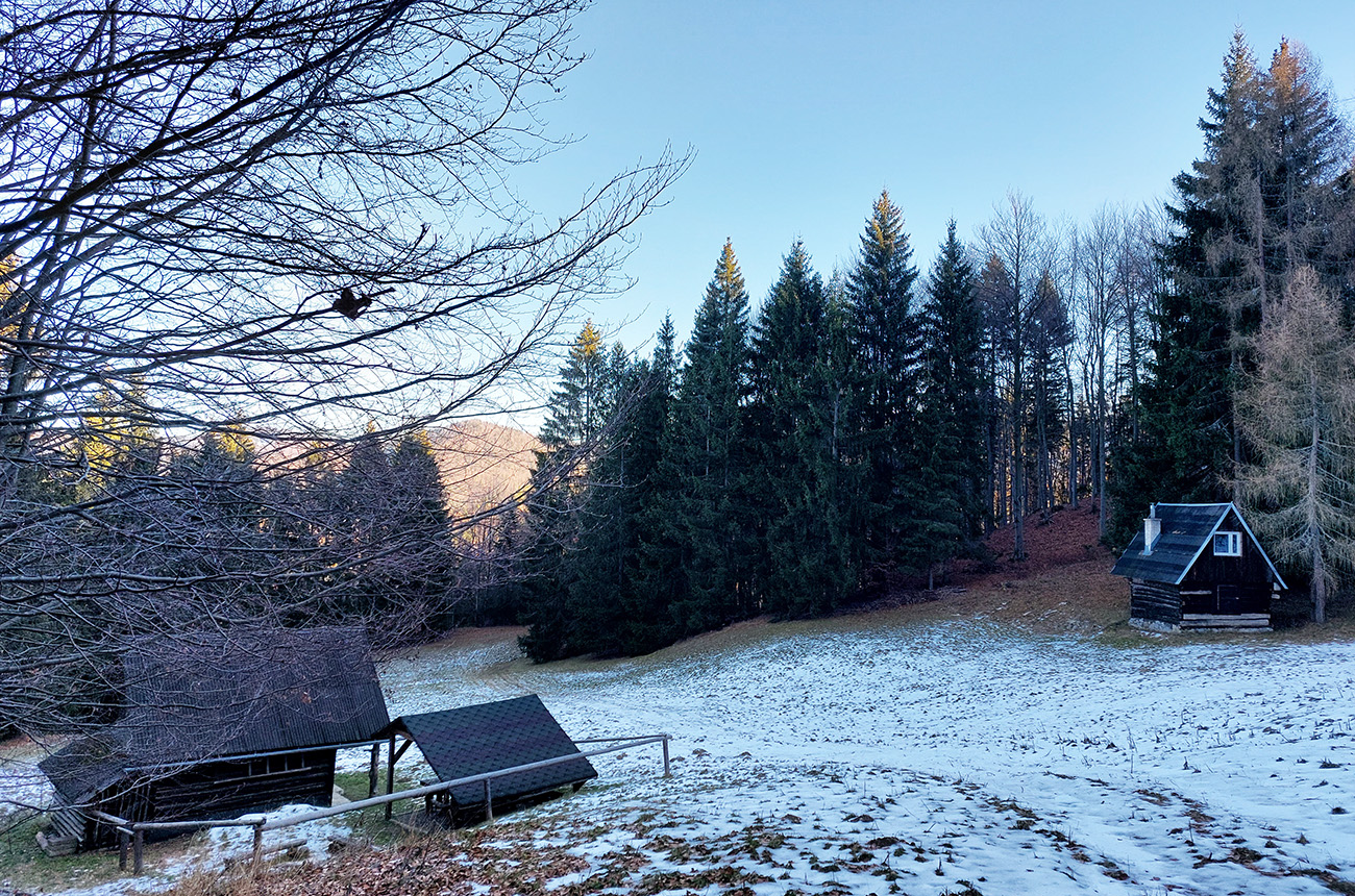V dedine ešte pár výškových na Baštu – oplatilo sa, lebo okrem Fatry sa otvoril pohľadom aj na sever kotliny, jemne rozostrený riedkym inverzným závojom a nízkym popoludňajším slnkom. A za chrbtami nám spomedzi Vrchdielu a Smrekového vykúkala Prieložnica. Fajné kolečko to bolo, aj počasie! Síce stretnúť koncom decembra v lese na prechádzke medveďa a salamandru, to nie je veľmi s meteorologickým poriadkom, no čo už...