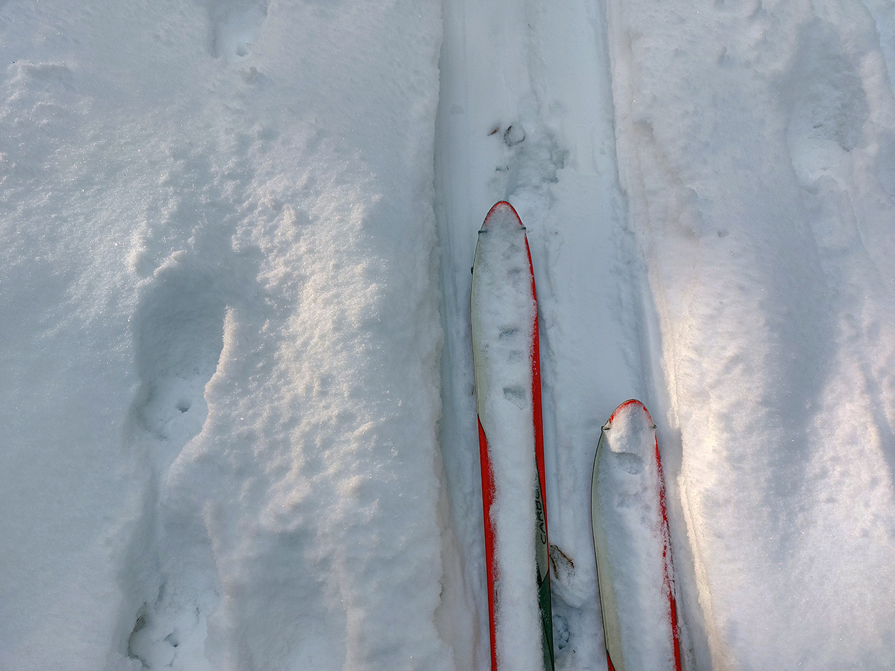 Podarilo sa zahájiť o týždeň skôr ako vlani, aj to je už úspech! A dalo by sa vlastne ešte o týždeň skôr, po prvom poriadnom snežení. Niekde, lebo veľké lokálne rozdiely ten navlnený snehovo-dažďový front priniesol po 20. novembri. Zámer bol ísť na Smrekovicu, lebo v dolinách snehu málo a ešte aj to zlízal lejak, nad lesom zúrila pri prechode frontu víchrica a vydrela všetko do ľadu. Zato Smrekovica a okolie presne v tej ideálnej medzivrstve, dokonca na severných svahoch sme nesmelo dúfali aj v nejaké lyžovateľné prášky na zmrznutom podklade. V Ružomberku snehu nula, ale v hlave ešte zneli správy, ako práve pred týždňom v Bielom Potoku asi ako prví na Slovensku spustili vlek – takže oproti cez dolinu, okolo Vlkolínca, musí byť snehu tiež toľko, že by sa aspoň hore brehom dalo... A aj tak bolo – v smere z mesta na juh snehu okolo cesty rapídne pribúdalo! Čiže zmena plánu, odbočka doprava skôr a reťaze ostali v kufri, lebo na parkovisko pod Vlkolíncom cesta odhrnutá, posypaná, aj keď s ostrovmi ľadu. Ale dalo sa. Takže začalo to romanticky: