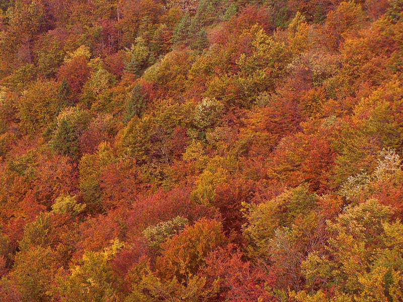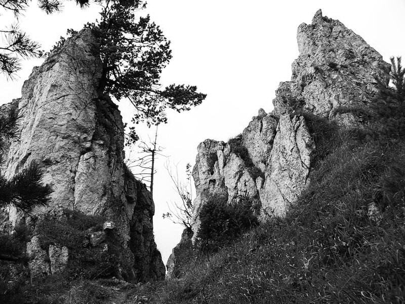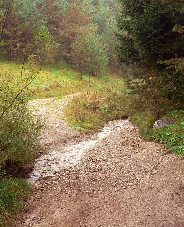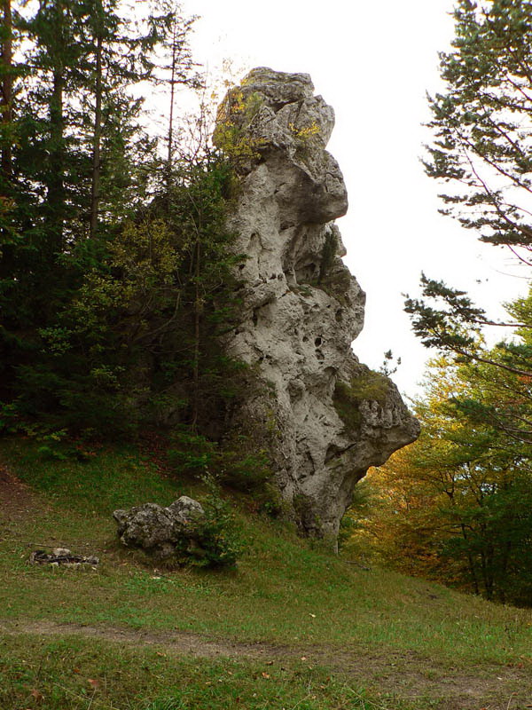 Preto dnes stúpam starou vozovou cestou, ktorú pradávno vyznačili furmani svojimi záprahmi. Potok ju preskakuje a ja preskakujem potok. Opúšťam zvuky každodennosti, čoraz menej dotierajúce z doliny v hĺbke. Za chrbtom štekot psov, zavýjanie cirkulárok, hukot cesty, vpredu šum stromov a potoka. Bralo na mňa vykúka spoza horizontu lesa, akoby zvedavé, kto sa naň teperí. O kus vyššie ostrov ostrého slnečného svetla na rozľahlej poľane, vzorkovanej štvorcami opustených košiarov, a znovu ponor do tieňa bučiny. Pod nohami šuchoce lístie, jeho veličenstvo Šíp začína opatrne vystavovať na obdiv svoje poklady. Najprv ma necháva obdivovať svoje sochárske umenie akoby nesmelo, v obklopení bukových staršinov, pokrútených vekom. Potom jeden zo svojich výtvorov ponúkne pyšne na čistinke, aby vynikol.