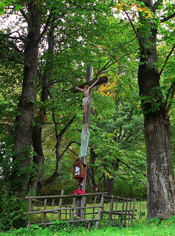 Napokon ale zmierený s nutným návratom do reality opúšťam Podšíp. Ešte naposledy sa obraciam, medzi konármi mizne božia muka a ja sa definitívne ponáram do lesa každodennosti, priťahovaný do doliny štekotom psov, zavýjaním cirkulárok, hlukom cesty ...