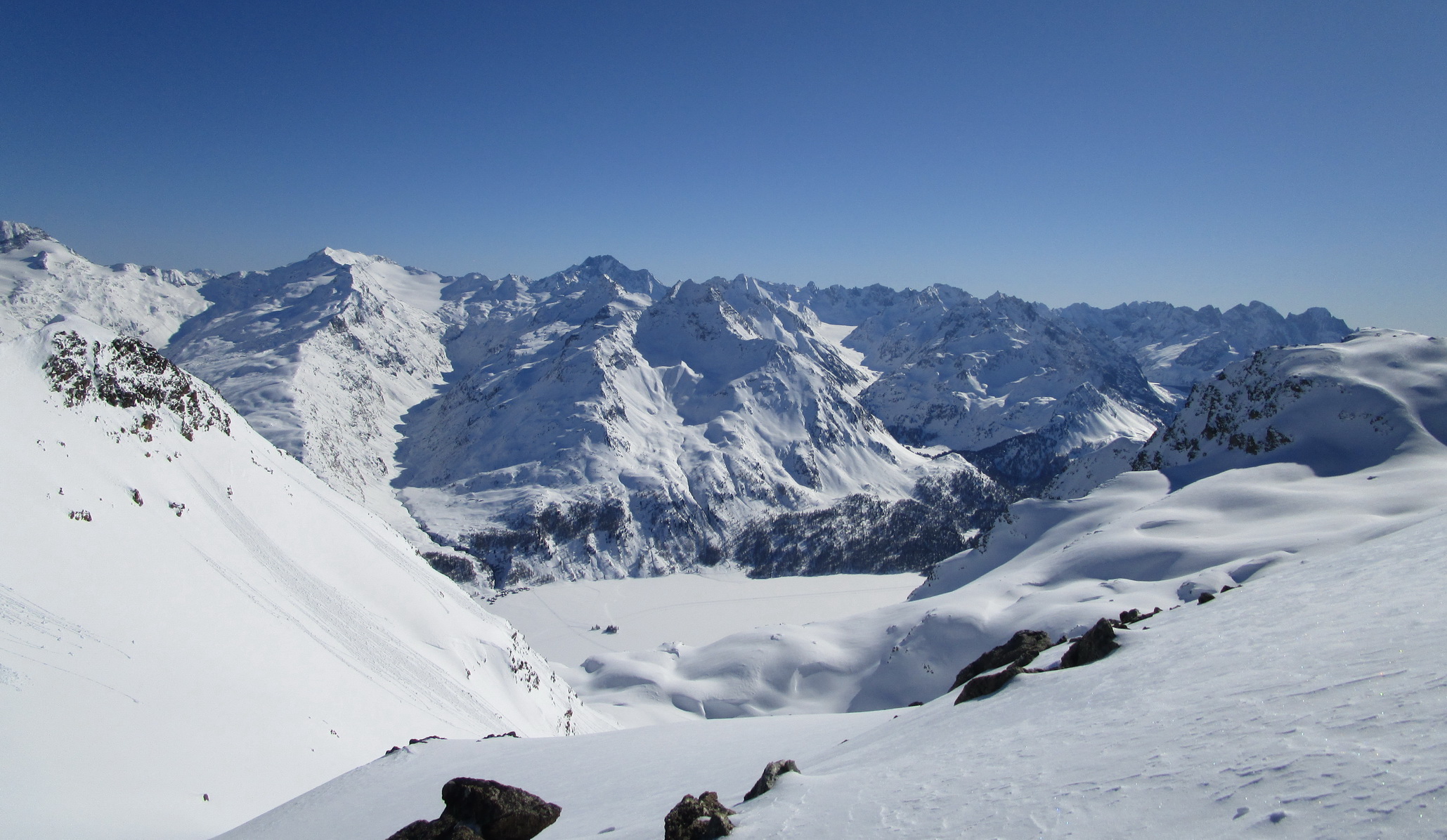 Prečo je skialpová túra na Lagrev tou najkrajšou z tých ktoré je možné absolvovať jedným výšlapom priamo od parkoviska pri ceste vedúcej cez Julierpass? Článok o nej už na Vetromagu visí ale vďaka tomuto fotomateriálu som si neodpustil ho zdupľovať.