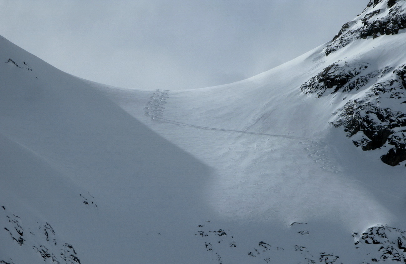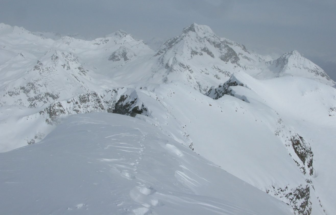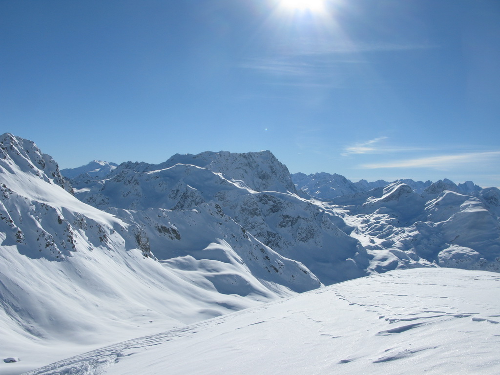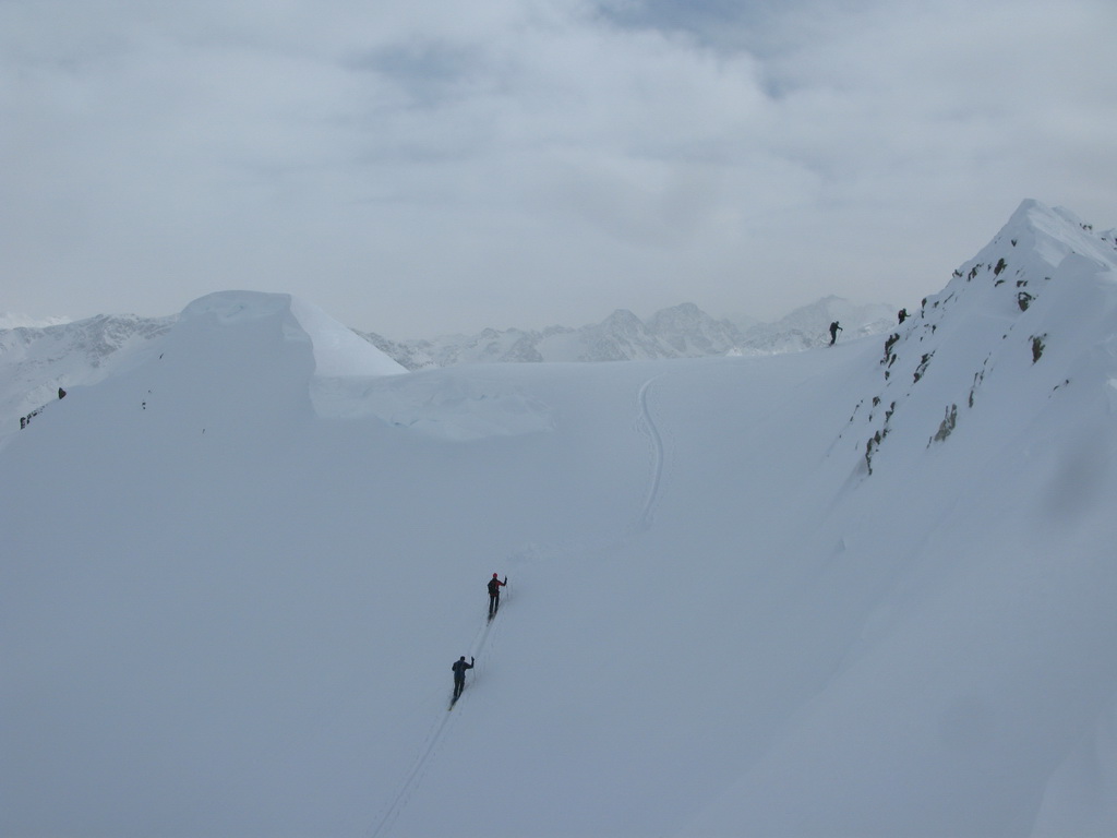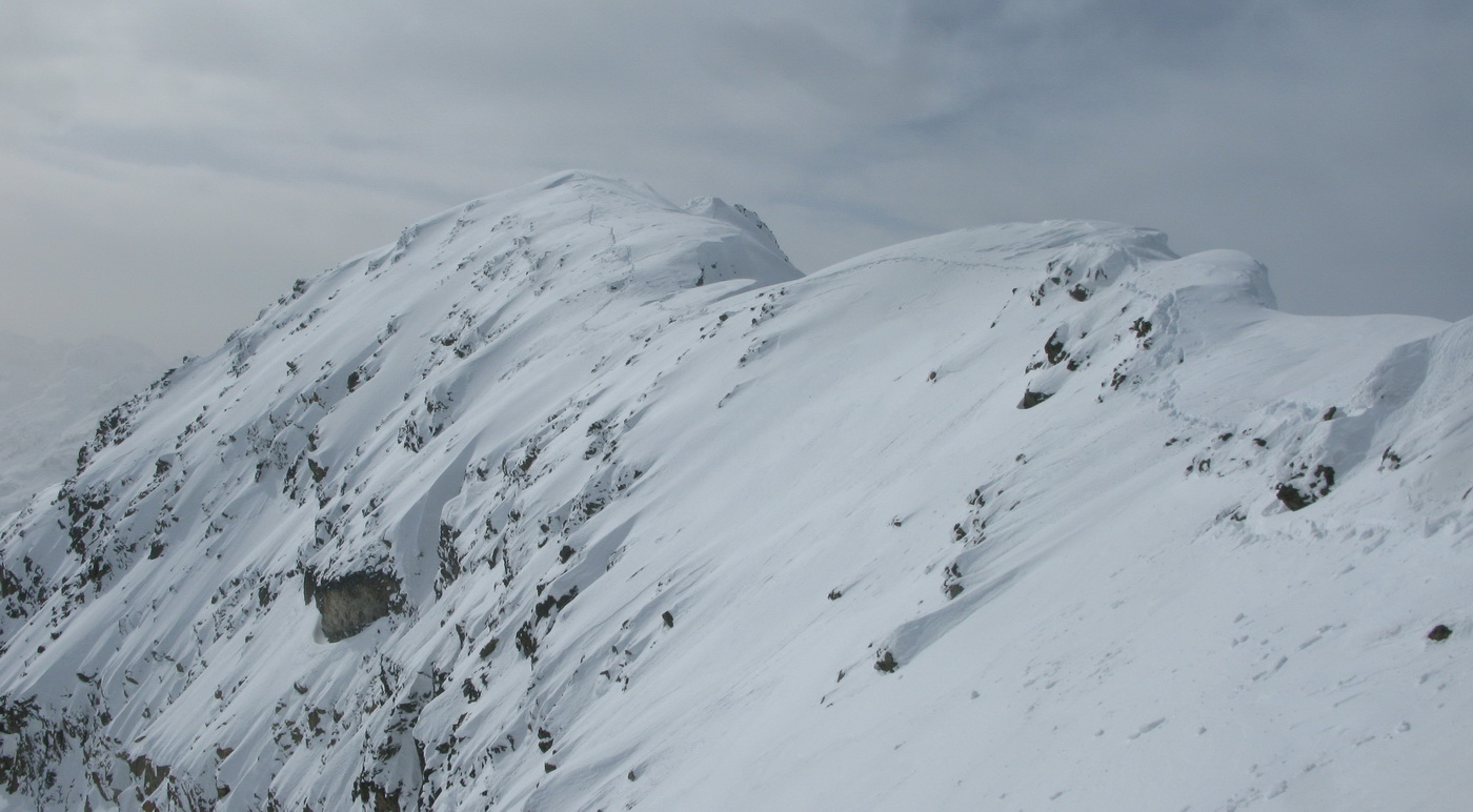 Na tretí pokus o tento kopec sa za dobrých podmienok zastavujem až na vrchole. Záver už idem peši. Z vrcholu sú nádherné výhľady na všetky strany. Po návrate k lyžiam nasleduje tisíc výškových metrov krásneho zjazdu v prašane.