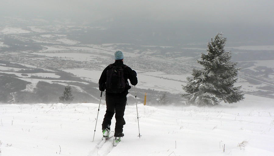 Typické pre túto zimu – tretina januára a až teraz som sa prvý raz dostal na pásy. Mal to byť prieskum podmienok na hrebeni Veľkej Fatry, ale aktuálne to prestalo byť, už keď sme vyzúvali lyže - začalo liať ako z krhly. Teplota vystúpila poriadne do plusu a tých približne 30 – 40cm bolo už na druhý deň minulosťou. Predpoveď žiaľ vyšla, teplý front dorazil. Mraky už sedeli na kopcoch asi od 1000m vyššie a fučalo fest. Tak sme sa vybrali na hole nad Nolčovom na severe Veľkej Fatry, ktoré sú nižšie a dosť trávnaté, aby sa tam dalo pošmýkať aj v tejto snehovej biede. Víchricu dáko prežijeme, aj keď SHMU vydal výstrahu najvyššieho stupňa :-)
