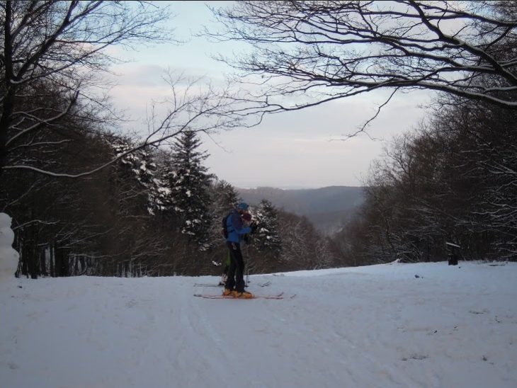 Nalepíme pásy a ukrajujeme prvé metre posneženým lesom. Vyšlapeme až k bufetom pod Kamzíkom a odtiaľ smerom k lanovke a dole starou zjazdovkou, kde ešte v lese vidieť stopy starého vleku.