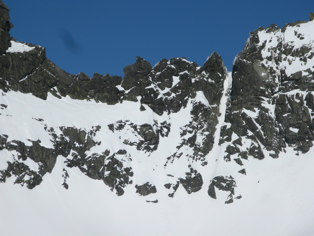 Slnko aspoň pekne natopilo žľab nad Popradským a ja som pekne hore vycupital bez haršajzní. Prebehol som po tvrdom snehu Dračou dolinkou a už aj som pripínal mačky na nohy pod Dračou bránkou.