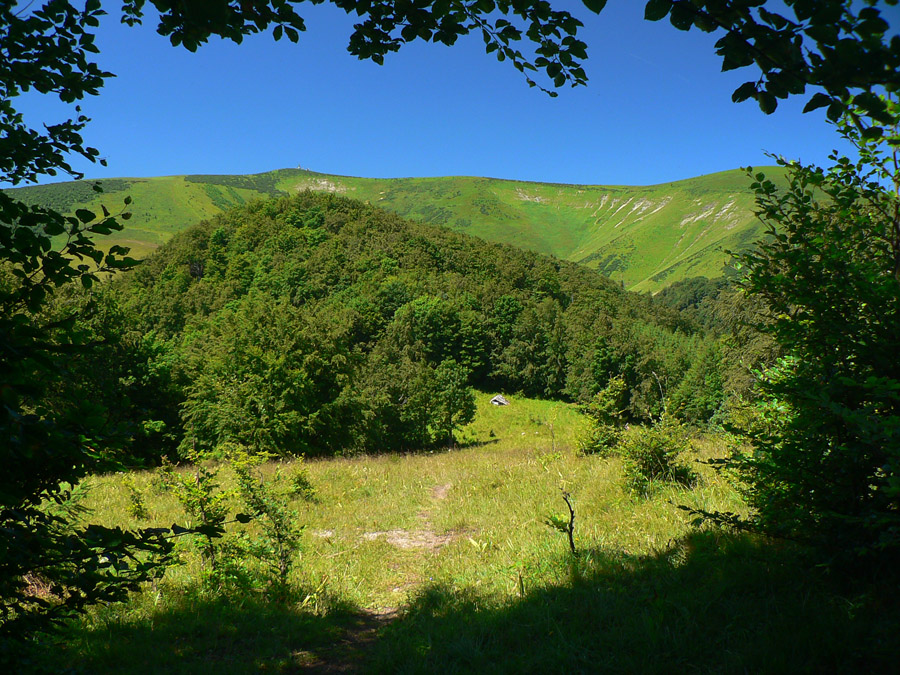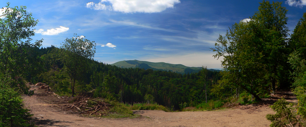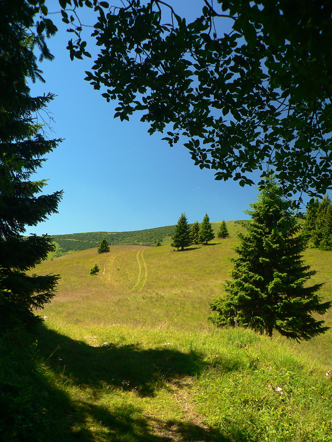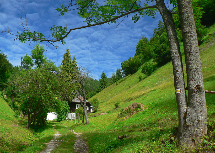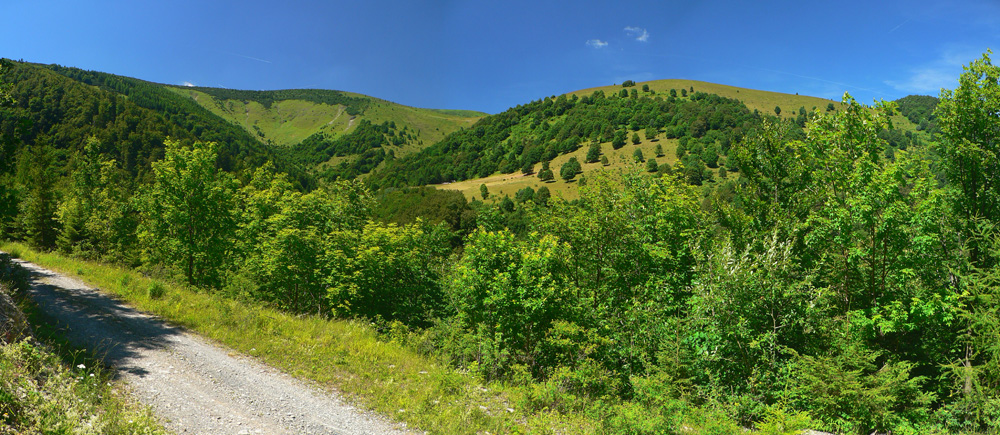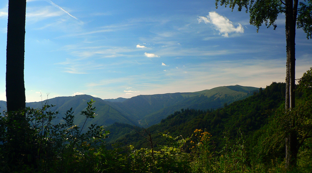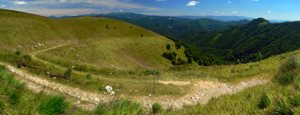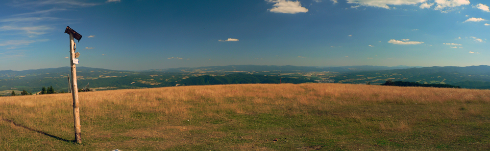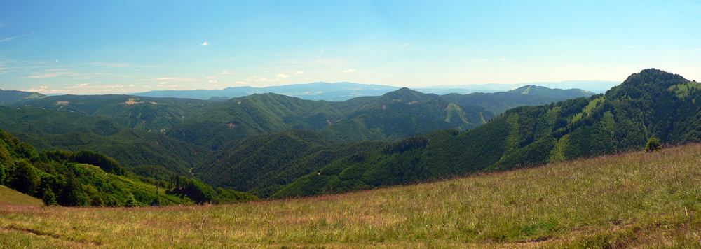 Pretože je leto a nie október, využil som jednu júlovú nedeľu po prechode frontu, keď sa vzduch (pre leto netypicky) vyčistil a ochladil. Autobusy tu často nestoja, tak okruh z Horného Jelenca cez Prašnicu, obe Prašnické sedlá, Rybovské sedlo, Rybô a Valentovú nazad do Horného Jelenca som si predĺžil ešte cez Dolný Jelenec a Jelenskú dolinu smerom na hrebeň Starohorských vrchov a až na Panský diel nad Bystricou. Odporúčam - a veľa sa tu toho dá pojazdiť aj na bajku!