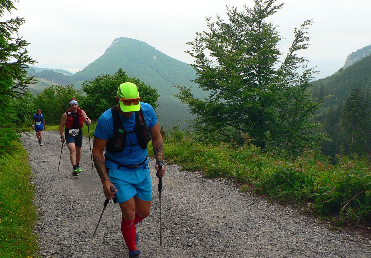 Stúpania samozrejme tiež výživné, a nielen dĺžkou. Do toho prvého (a hneď poriadne strmého) za hradom ešte všetci premotivovane valili, ako keby cieľ bol na K1 v sedle Javorina. Už to druhé (z Vrútok na Minčol) vraj viacerým nechutilo. To tretie bol superdlhé, v spodnej časti nekonečne asfaltové (znovu do sedla Javorina) a to posledné na Kojšovú, tam išli niektorí už po štvornožky. Taký pochod čerstvo vyliahnutých zombíkov. Inak tam sa na niektorých miestach ani nedá inak ako šplhom, aké je to strmé - len podľa mapy vyzerá oproti predošlým stupákom ako taký malý, nevinný brdok na záver. To len ako malé varovanie do budúcnosti – lebo niektorí prepaľovači sa ani po niekoľkých účastiach ešte nepoučili, že?