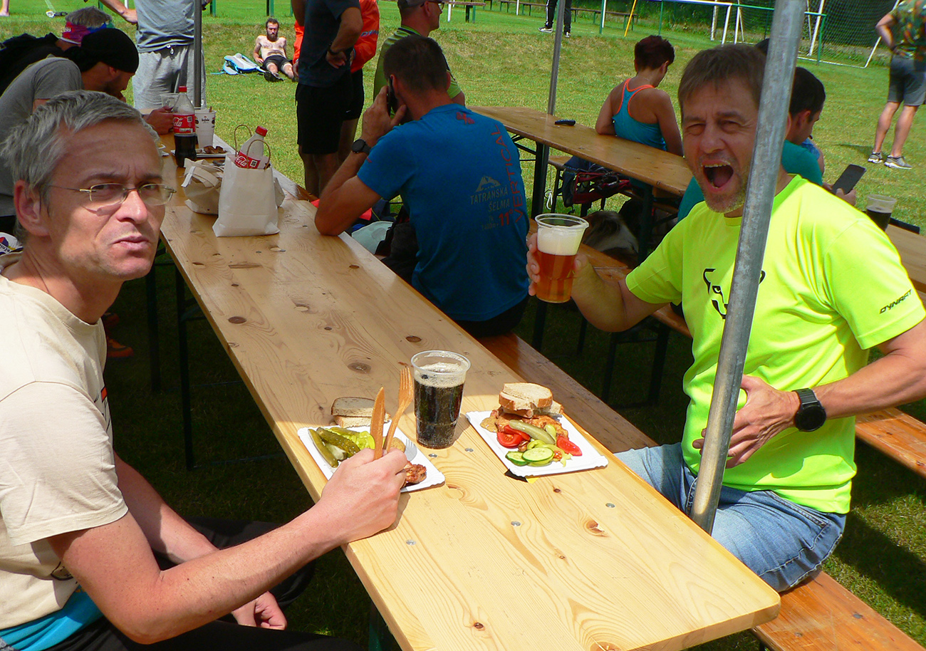 Ale nakoniec sa hádam dokotúľali v zdraví dole k Váhu, na strečniansku Marakanu, všetci. A mohli začať vychutnávať - lebo tráva mäkká, výčap bohatý a počasie ako na dovolenke. Mám dojem (aj podľa rečí), že viacerí sa na takéto akcie prihlasujú aj/len preto, aby sa mohli na obžerstvovačkách a potom v cieli dobre najesť. Asi im doma nedoprajú či čo. Zato tu organizátori dopriali všetkým, poriadne teda! Na tom malom, nepodstatnom, niekoľkohodinovom trápení medzi prestávkami na jedlo vraj až tak veľmi nezáleží, prípadne spomienky naň rýchlo vyblednú, veď poznáme spomienkový optimizmus... Tak davaj o dva týždne na ďalšiu akciu, keď sa otlaky a ego zahoja. A o rok na Mašľu, hádam už v pôvodnom „znení“. Všetko ostatné a podstatné (aj komplet výsledky) nájdete na domovskej stránke strečnianskych turistov.