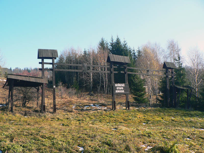 Pokocháme sa a sme nazad na červenej značke, ktorá nás vedie po asfaltke na Krahule, ale odbočuje z nej hneď na hornom konci dediny. Tu sa dá posedieť v prístrešku na začiatku bežeckých trás. Na smerovníku je ukazovateľov „na mrte“, ale červená prikazuje pešiakom štverať sa pomedzi nové „skromné“ chaty a krížom cez zjazdovku. Na Krahuliach je dnes asi viac chatárov ako obyvateľov, ale je to zároveň jediná obec u nás, ktorá má podľa zákona právo na tabuľu aj v nemčine (Blaufuss) - sme v srdci Hauerlandu, nemeckého ostrova na strednom Slovensku.
