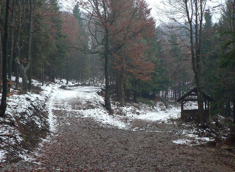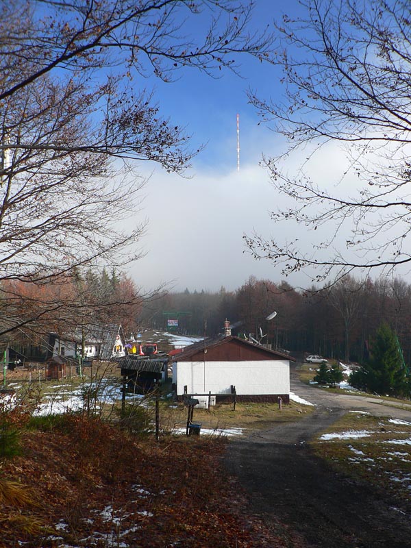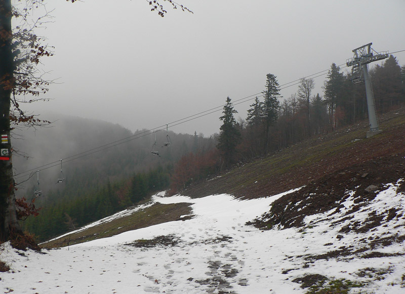 Nad lyžiarskym strediskom je stúpanie lesom na Skalku mierne, je dokonca možné vybrať si z viacerých ciest. Bežkári tu v zime musia mať raj, dokonca aj odpadkové koše sú na odpočívadlách. Na Skalke je stavenisko, Kremnica má veľké plány vybudovať tu celoročné centrum cestovného ruchu. Zatiaľ to tu koncom novembra 2009 vyzeralo dosť pusto. Hlavne že na lyžovačku bude treba dva lístky, lebo sú tu dvaja majitelia vlekov. Na novú zjazdovku nadávali už v predstihu bežkári, lebo preťala nástup na severný okruh Bielej stopy - našťastie je tu nová obchádzka po hrebeni poza vysielač. Zo strediska je to po červenej len kúsok k tunelu, ktorý od 14. storočia slúžil na dopravu medzi Kremnicou a Banskou Bystricou, tak sme samozrejme nevynechali príležitosť preskúmať, v akom stave je jeho zvyšok pár rokov po rekonštrukcii. Ešte že existujú dobrovoľníci...