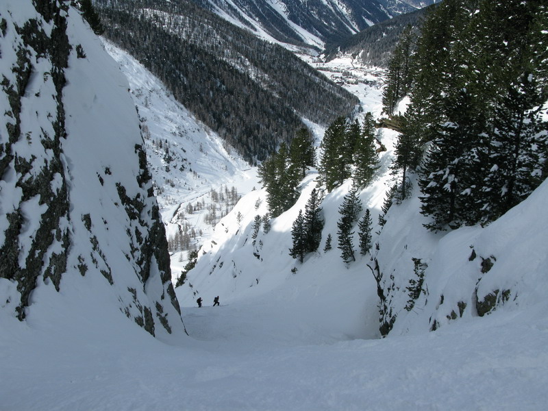 Asi najkrajší a najfotogenickejší zjazd. Už pri pohľade zo Suldenu ho vidieť ako strmý a neprístupný žlab. Za dobrých snehových podmienok je to však dobre lyžovateľný žlab so sklonom do 40 stupňov, len prvé metre pri vstupe do žlabu môžu byť strmšie.