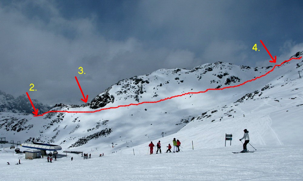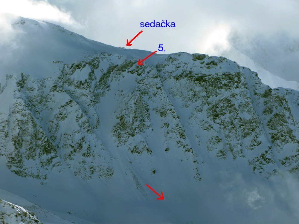 Do zjazdov 2,3,5,a6 sa púšťajte len keď sú tam už stopy. Horský vodcovia s klientami to prejazdia rýchlo, pokiaľ to podmienky dovoľujú a potom tam bude oveľa bezpečnejšie.