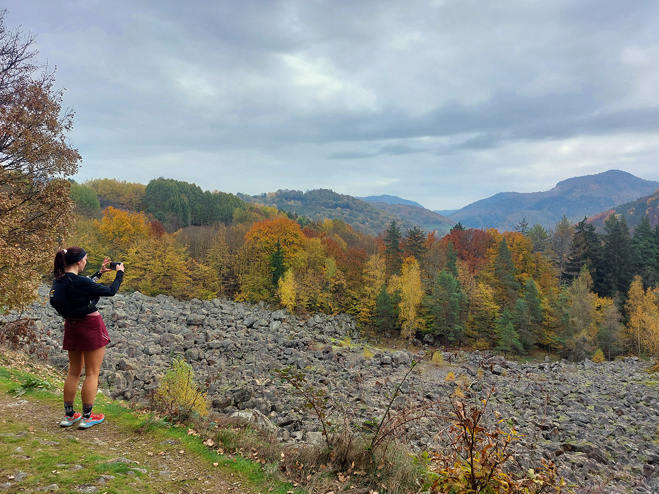 Inak miestami pekné olafoviny tam boli, ale zas aj pekné chodníky dole do Vyhní, kde sme čakali skôr zvážnice. No potom!!! Zas krmelec, aj s tajnou podporou (ak si niekto vypýtal), a grganie ešte výživnejšie, aj hore Kamenným morom. A tam vari druhá selfí-kontrola (po Tanáde): to vraj aby sa cieľoví komisári nenudili, že si tie samoyebky skontrolujú. Tí sa museli potom poriadne usierať nad niektorými ksichtami...