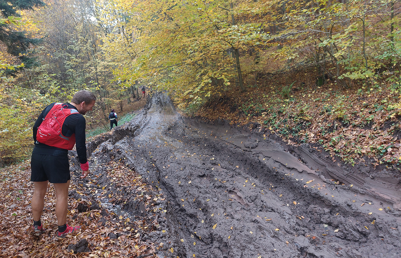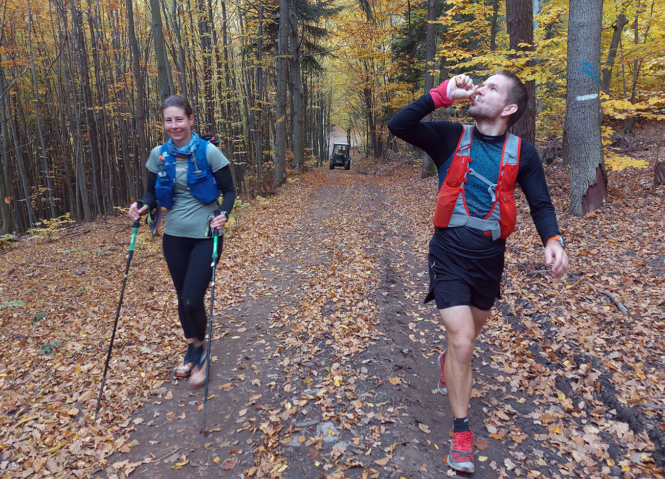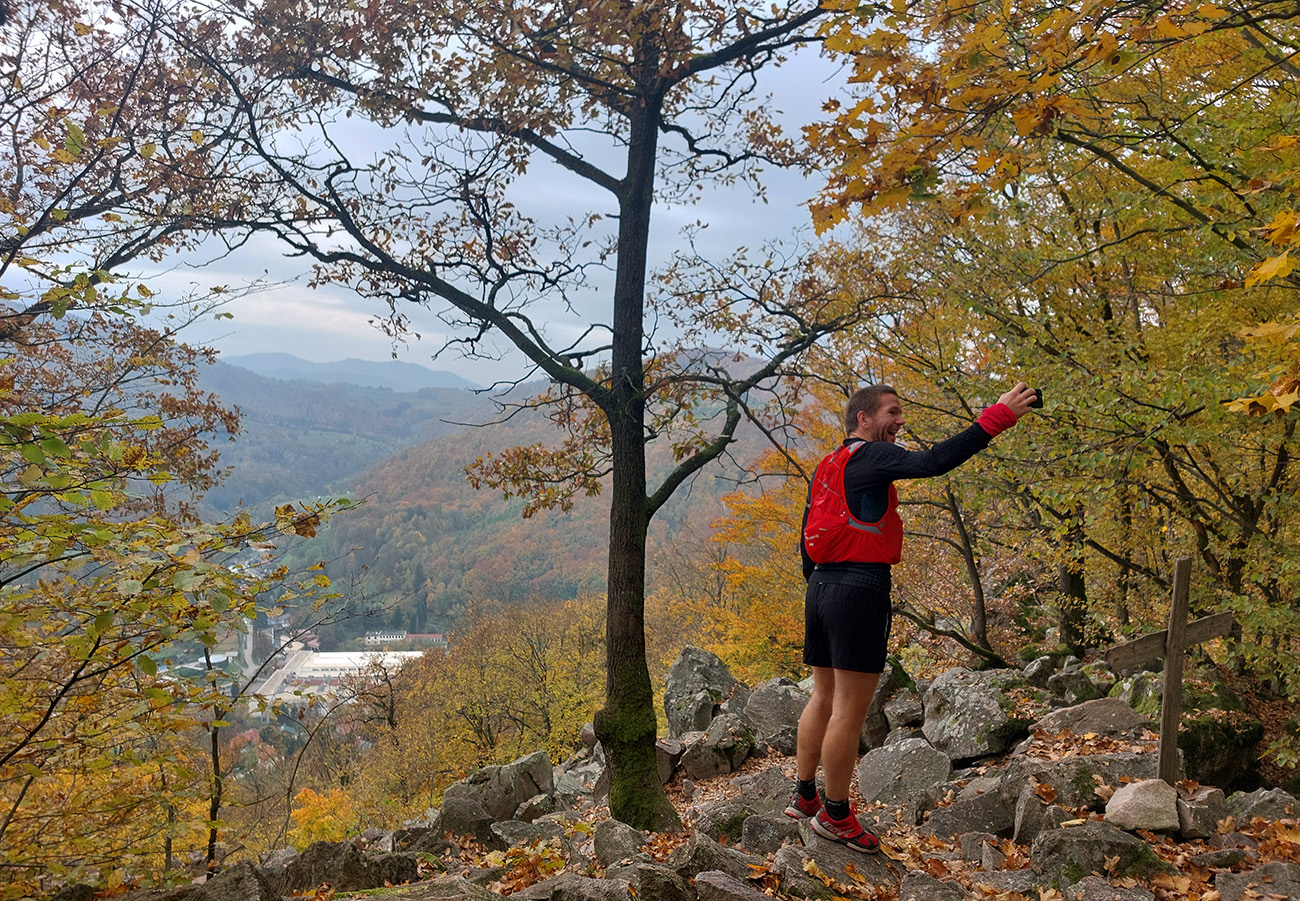 No dosť bolo hejtu, pome k priebehu. Hustú tmu pri prezentácii pod Novým zámkom vystriedalo príšerie po štarte. V lese pod Klingerom niektoré mäkkýše išli dokonca na čelovkách, hanba im! Slnko malo celý deň štrajkovať, na tradičnom fotopointe na Hornej Rovni na nás aj bohapusto kašľalo spoza mraku, ale potom si to rozmyslelo a na pár sekúnd prebliklo cez štrbinu v sivote. No len pre vyvolených: