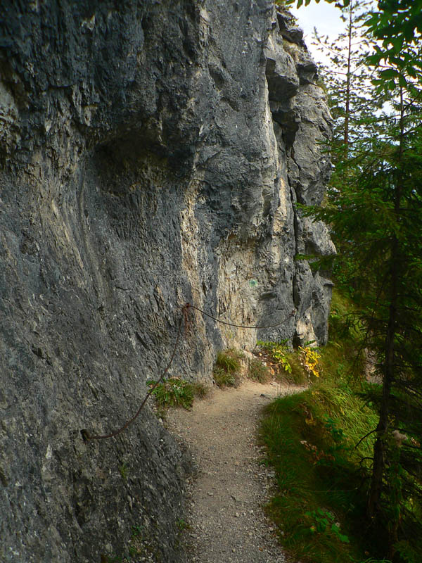 Nasleduje poriadne prudký zostup dolu z Bobot k asfaltke a rovnako prudký výstup na Malé nocľahy v masíve Sokolia. Zo dve krátke reťaze na pomoc, do Sokolia aj schodíky, ale hlavne veľa skál, veží, vežičiek nad hlavou a pod nohami ešte viac voľnej sute. Radosť padať :-) Len na to že sme v NPR Tiesňavy, dosť zaskočí pohľad na výsek s elektrickým vedením - priamo pomedzi skalné veže. Slovenská realita...