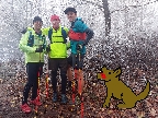 Chalani od rána mleli čosi o popadaných stromoch, čo zažili niekde inde, ale tu doteraz nič. Až pod Magurou pekne na husto a práve v najstrmšom. Do toho tam značka ide po zvážnici, poriadne vymletej po traktoroch, no radosť sa trápiť. Lebo pes sa vybehal a začalo mu dochádzať. Jazyk stále dlhší vyplazený. Zbehy snáď ešte horšie. Až v Prievidzi sa museli okná zatriasť, ako zahrešil, keď už ktovie koľkým konárom dostal ranu po pazúroch. Do toho tie sprosté štucne, ktoré nedržia a sprosté sieťky na topánkach, na ktorých nedržia dupľom ani so zicherkami, to sú mi za inovácie... Proste keď sa darí, tak sa darí. Našťastie cez Maguru bol už chodník ľudskejší a po dobytí najvyššieho štítu na trase chalani vyhlásili obed, tak som stihol ponaprávať pošramotenú povesť výstroja. Nie Jožo, to stepovanie nebolo kvôli nohám primŕzajúcim k podkladu :-)