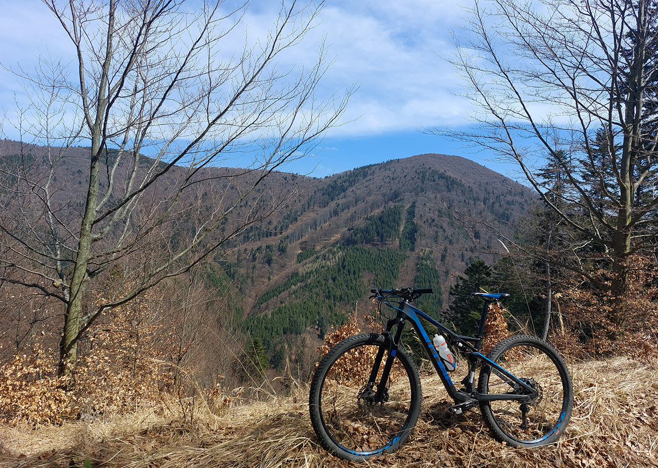 Asi 30-kilometrový okruh v Lúčanskej Malej Fatre, na turčianskej strane, okolo doliny so známym lyžiarskym strediskom. Tréningový preto, lebo chrtivý potenciál je tam vysoký, estetický o dosť nižší, miestami sa prepadá hlboko do mínusu. Najmä na severnom okraji doliny, kade som sa štveral hore. Ale pod kolesami pohodlná, zväčša rovná šotolina, samé lesné cesty, žiadne prekvapenia, aj gravel by sa miestami nudil. No héééj, aj výhľady sú – cez rúbaniská na rúbaniská. Aj hlboko do riedkych lesov vidno, lebo veľa tých ciest je surových, nových, ešte im okraje nestihli zarásť. Tak je to vhodné aj pre medveďofóbov. Čiernych kôpok sa tam na cestách vždy niekoľko nájde :-)