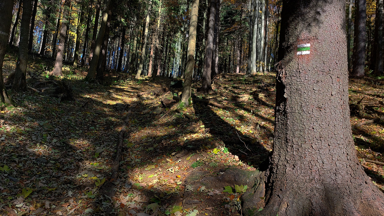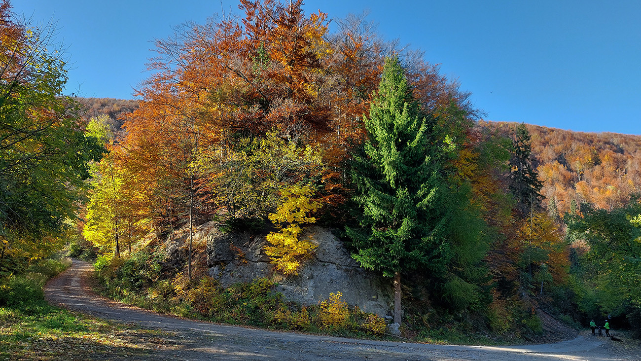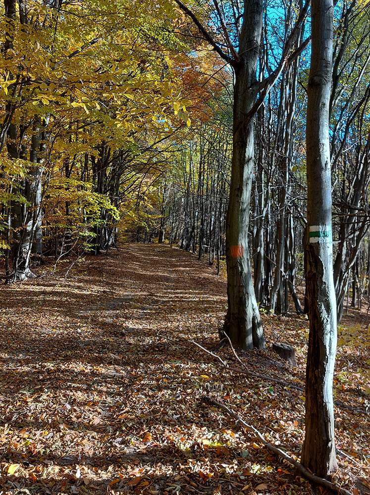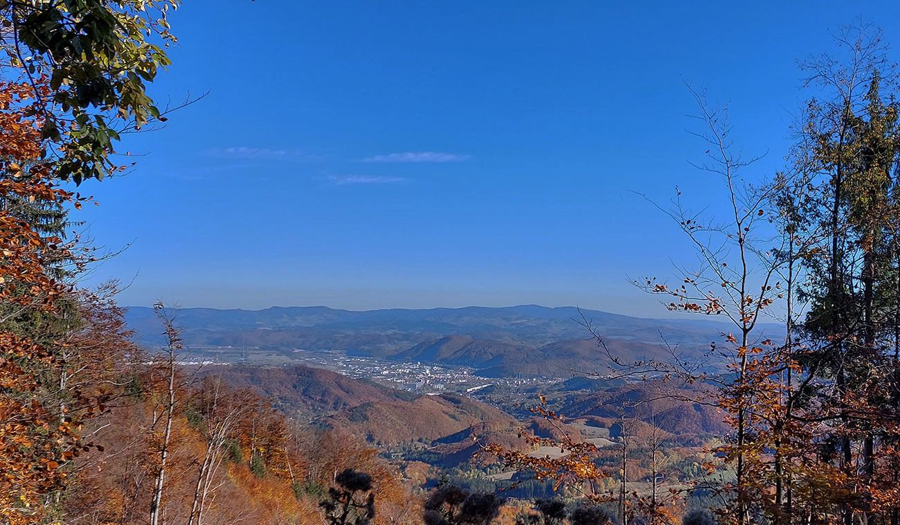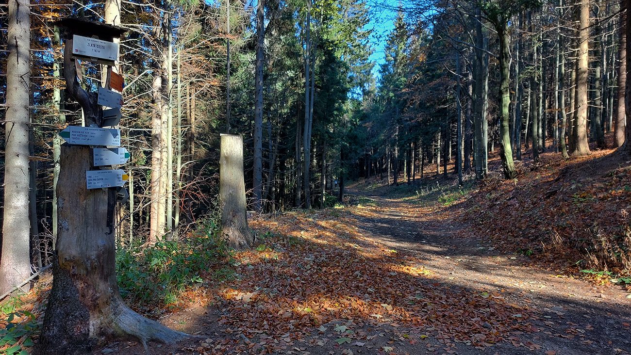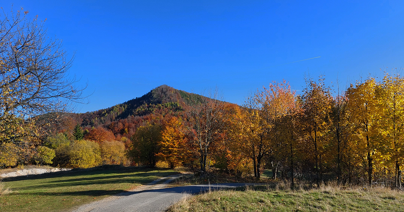 Názov hádam dobre vystihuje filozofiu tejto prechádzky. Predposledná októbrová nedeľa totiž vyšla neskutočne, čo sa počasia týka. Mrazivé ráno, obloha vymetená, vzduch ostrý, po fronte prečistený a do toho všetky farby jesene v najjasnejších odtieňoch. Jeden z tých nemnohých „superturistických“ dní, kedy hádam aj prechádzka rúbaniskom je potešením pre oko. Zaniesol ma do Kremnických vrchov, na ich západné úpätie. Potreboval som sa odtiaľ dostať do Banskej Bystrice, ale na hlavných turistických trasách isto bolo plno ľudí – preto nastúpila tá improvizácia a hľadanie kadejakých bočných a turisticky neoficiálnych cestičiek, po značkách aj mimo nich. Kremnické vrchy majú samozrejme tých možností strááášne veľa.