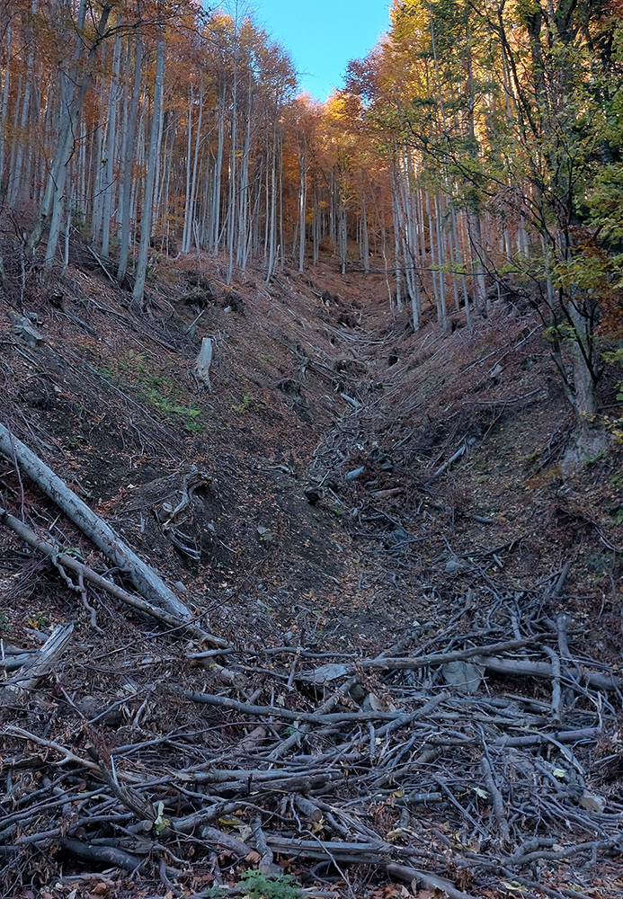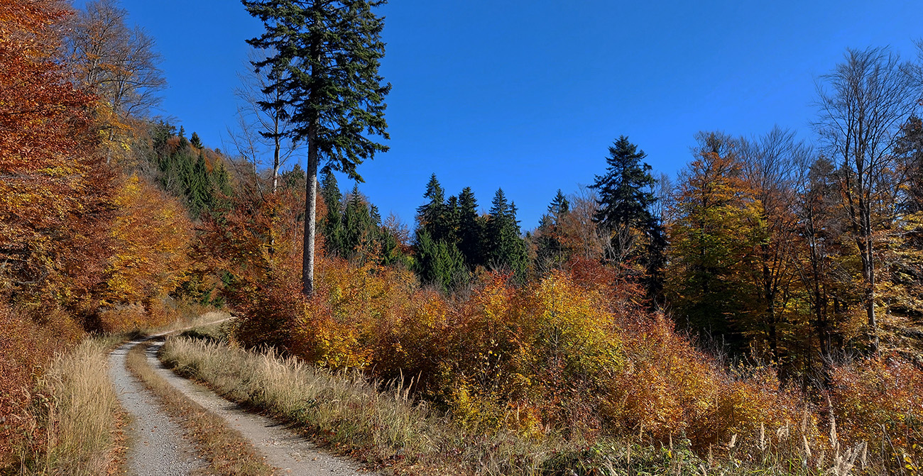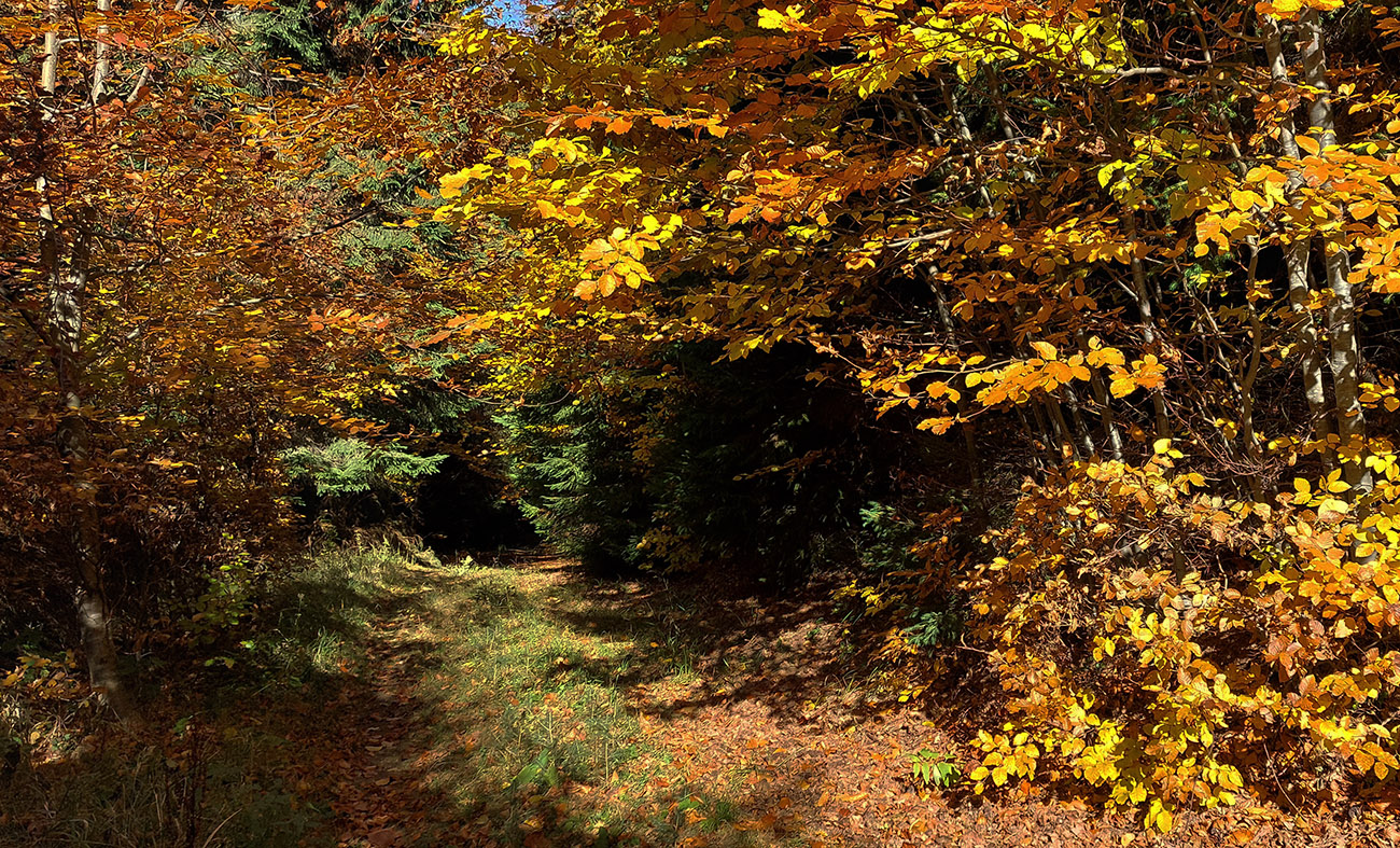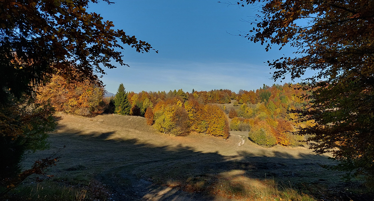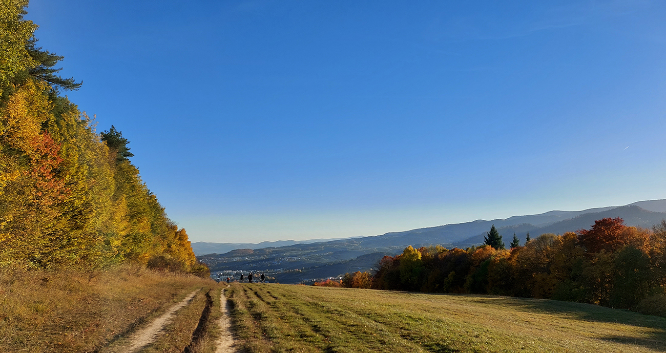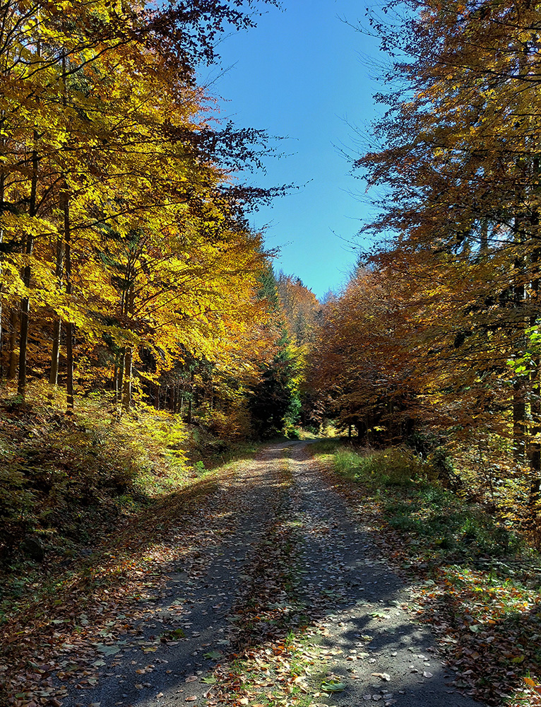 Názov hádam dobre vystihuje filozofiu tejto prechádzky. Predposledná októbrová nedeľa totiž vyšla neskutočne, čo sa počasia týka. Mrazivé ráno, obloha vymetená, vzduch ostrý, po fronte prečistený a do toho všetky farby jesene v najjasnejších odtieňoch. Jeden z tých nemnohých „superturistických“ dní, kedy hádam aj prechádzka rúbaniskom je potešením pre oko. Zaniesol ma do Kremnických vrchov, na ich západné úpätie. Potreboval som sa odtiaľ dostať do Banskej Bystrice, ale na hlavných turistických trasách isto bolo plno ľudí – preto nastúpila tá improvizácia a hľadanie kadejakých bočných a turisticky neoficiálnych cestičiek, po značkách aj mimo nich. Kremnické vrchy majú samozrejme tých možností strááášne veľa.